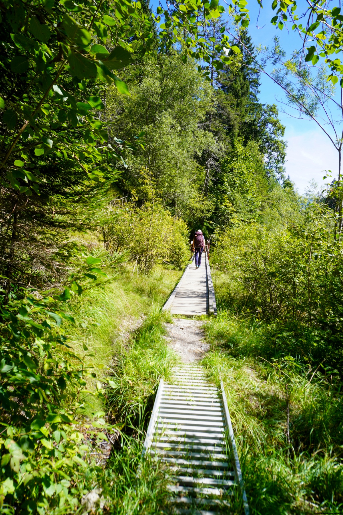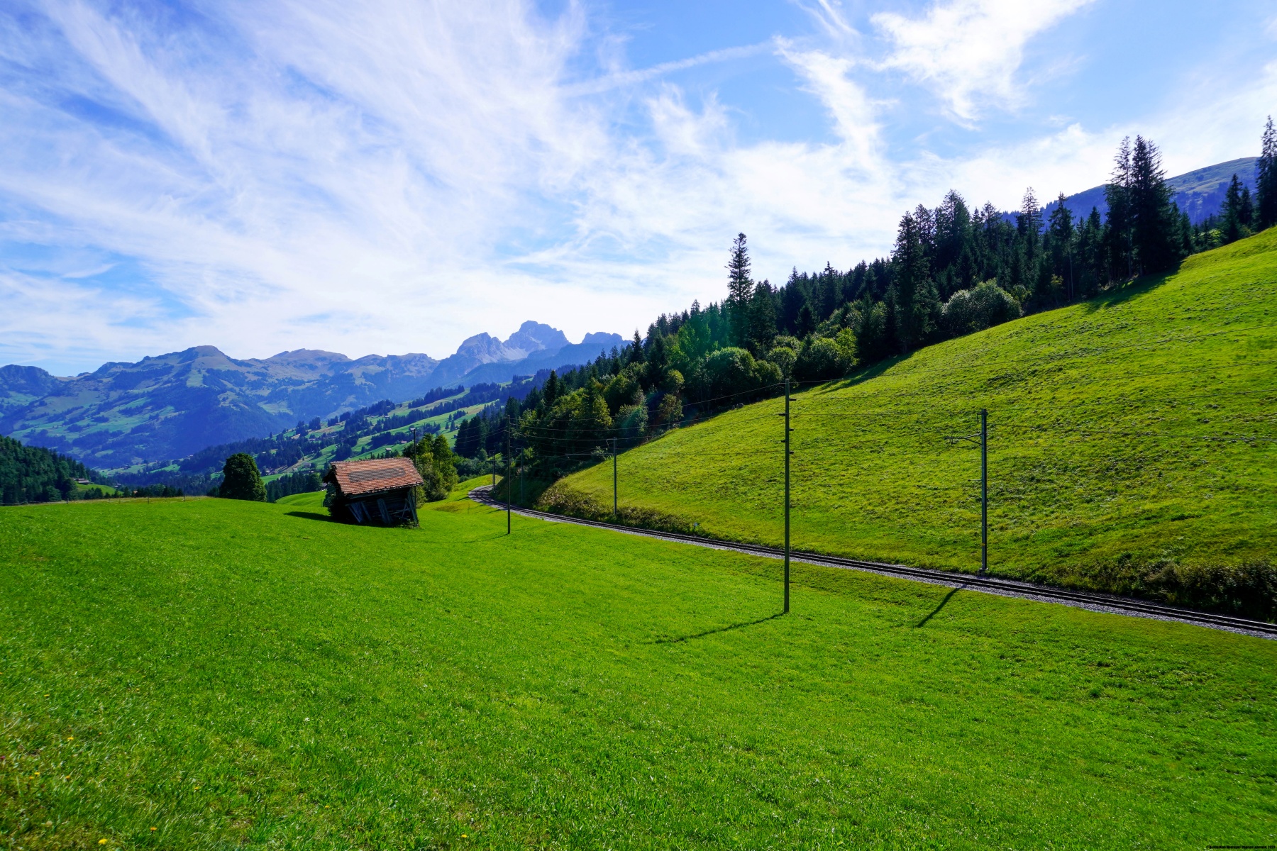 Toute la randonnée décrite ici se déroule sur de bons sentiers, hormis dans les villages où on doit suivre les routes, et entre Saanenmöser et Oeschseite où on suit une petite route goudronnée. C’est pourquoi, depuis Oeschseite, il vaut la peine de suivre le sentier longeant la Kleine Simme, même si cela représente un léger détour. On suit alors le vallon de la rivière le long d’un bon sentier où la présence du cours d’eau apporte une agréable fraîcheur. Après avoir dépassé le stand de tir et la piscine, on ne tarde pas à arriver à la gare de Zweisimmen qui est l’endroit où les voies changent d’écartement. Vers le bas, on a un écartement « normal » à 1m435 et au-dessus, on a un réseau de voies étroites à 1m. Récemment, un dispositif permet de modifier l’écartement des roues pour permettre de poursuivre le parcours du Golden Express.