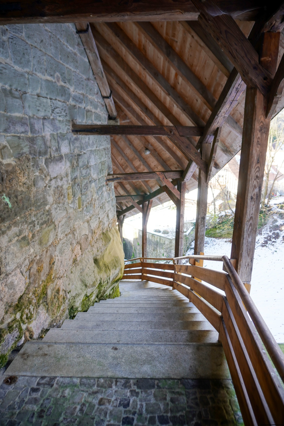 Là encore, cela faisait très longtemps que j’avais dans l’idée de suivre l’étape du chemin de Saint-Jacques entre Schwarzenburg et Fribourg. La raison essentielle est que l’on passe par le fameux chemin creux taillé dans le grès et permettant de descendre au bord de la Singine. Sur les bords de cette portion de chemin sont taillées des marches qui permettaient de mener les chevaux sans être gêné par ceux-ci. Autant dire que cette portion de chemin figure à l’inventaire des voies historiques de la Suisse. L’entier de l’itinéraire traverse à la majorité des zones rurales. On ne se trouve donc pas en montagne, et le parcours est parfois un peu monotone. Toutefois, l’arrivée sur la ville de Fribourg est absolument magnifique.
