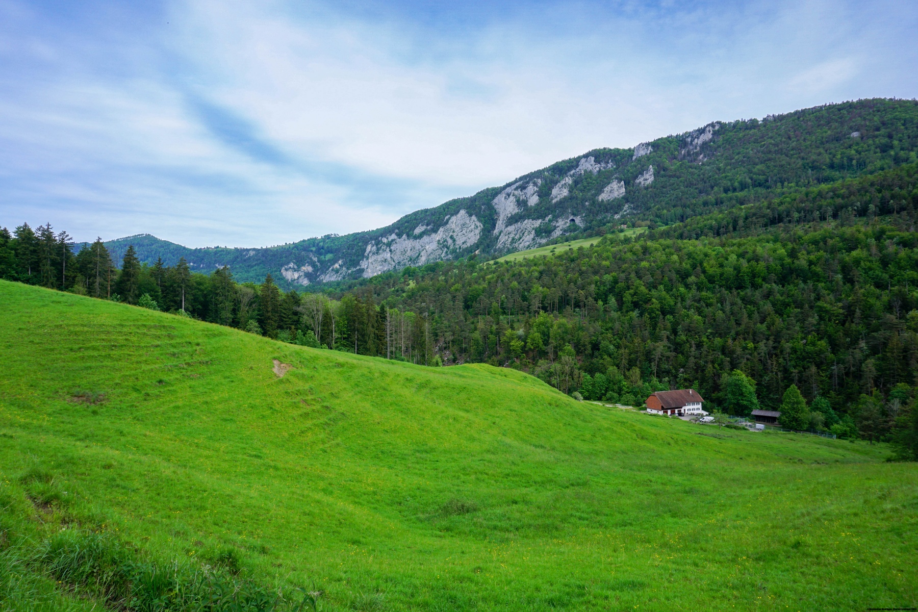 Au lieu de suivre de manière fidèle la gorge, il vaut la peine de la quitter pour atteindre la prairie de Chuematt et, plus loin, la Obere Tannmatt. De cet endroit on a une très belle vue sur tout le Thal. On distingue au loin la localité de Balsthal. Il faut alors fournir encore un petit effort pour rejoindre la crête dominant la Tannmatt, avant de descendre sur la ferme de Mieschegg. On passe alors devant une très belle petite chapelle avant de longer une lisière de forêt.