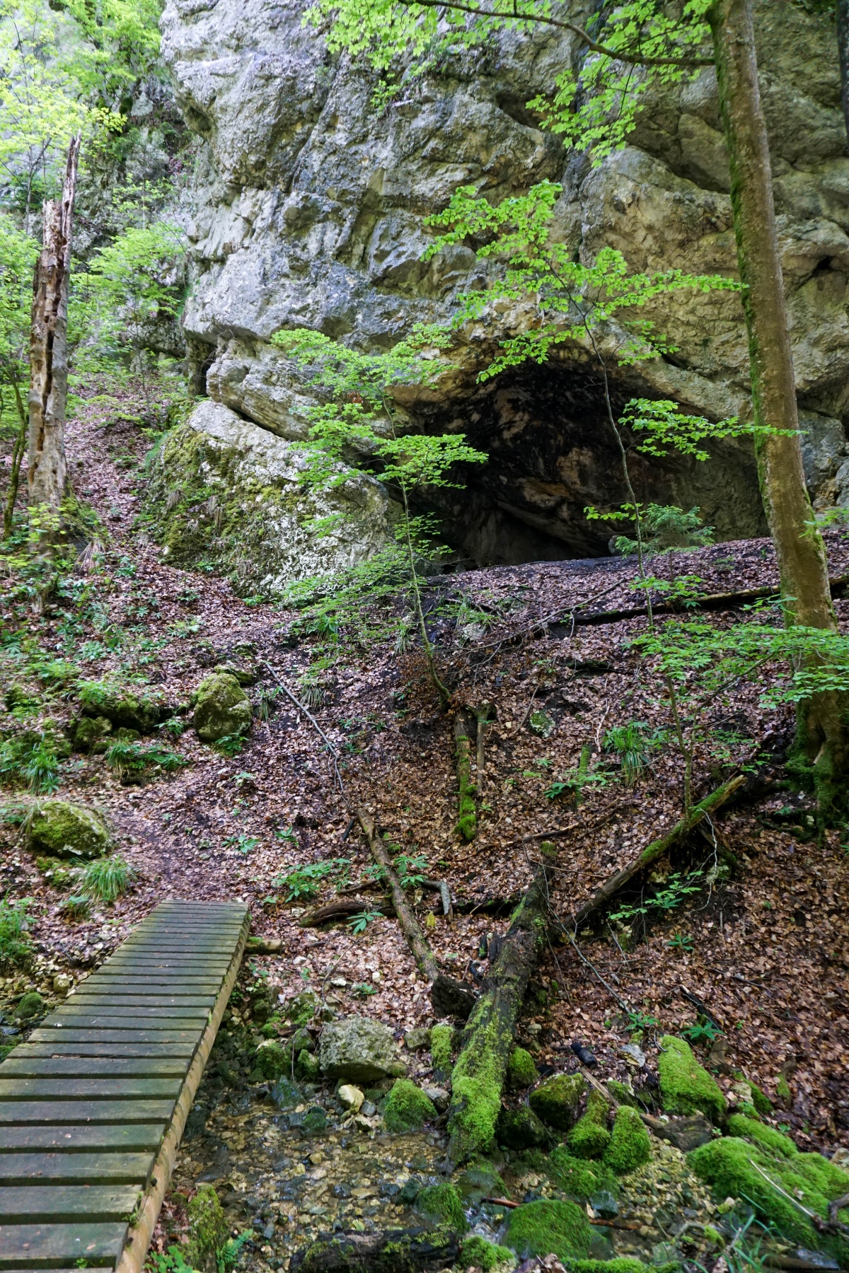 Arrivé à un petit col, près de Büx, il faut encore monter un peu pour passer une autre bosse et rejoindre la ferme de la Hinter Brandegg. Plus loin, on ne tarde pas à descendre de manière assez raide en forêt pour passer sous l’impressionnante voûte du Bärenloch