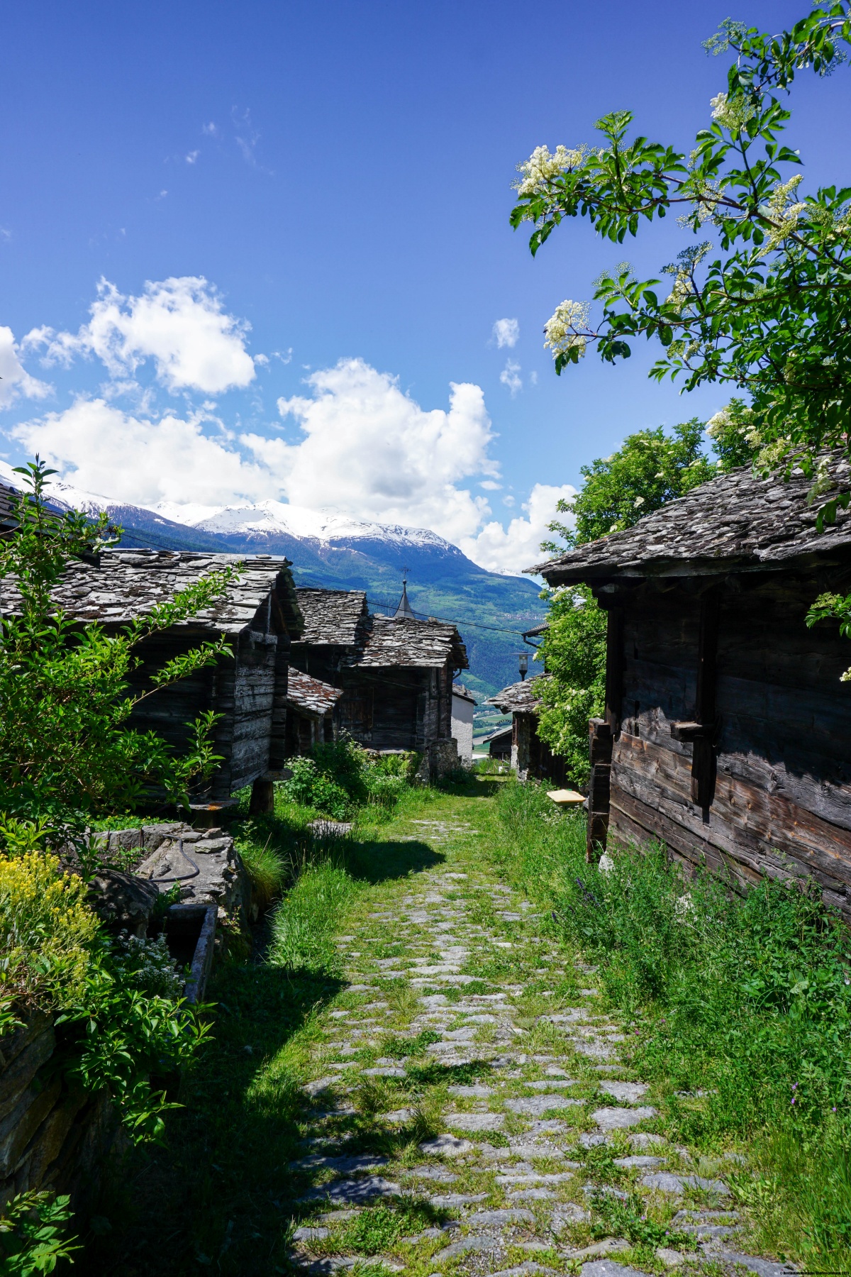 Bien qu’étant conscient que la mi-mai était tôt dans la saison pour suivre les bisses du Baltschiedertal, je m’étais dit que leur parcours devait quand même être réalisable. C’est ainsi que j’avais prévu de partir d’Ausserberg afin de suivre le Niwärch et de revenir par la Gorperi. C’était sans compter avec les grandes quantités de neige qui étaient restées de l’hiver précédent.