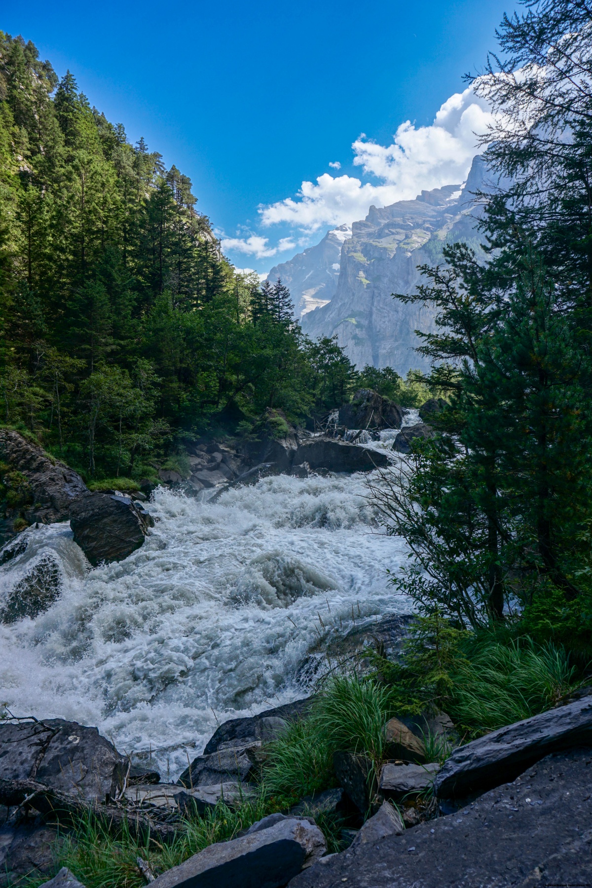 Once at the bottom of the Gasterntal, we follow the Kander to reach Kandersteg. Because of the heat that reigned those days, this torrent had transformed into roaring waters and the surroundings of these remind me of Calame’s painting “Thunder at the Handeck”.