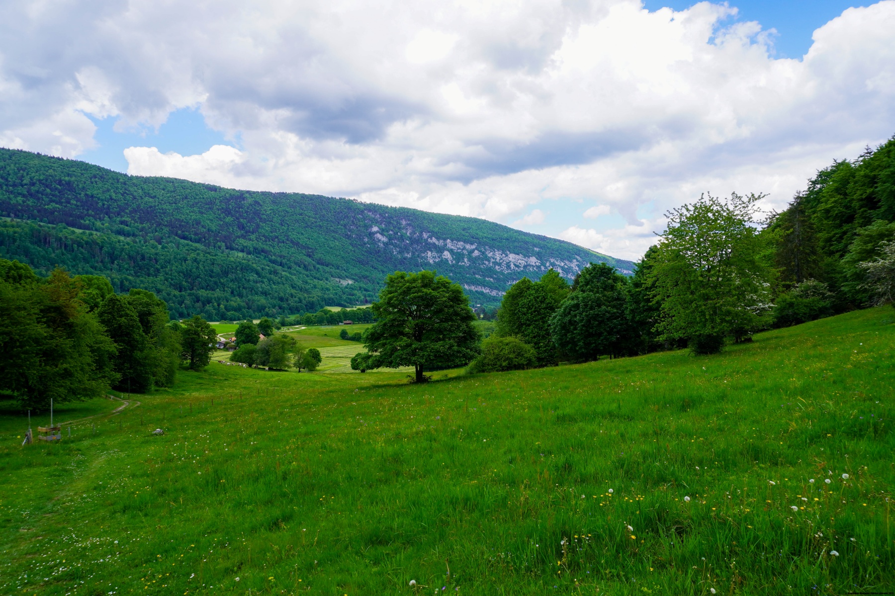 Auf der Strasse sind wir an der Métairie de Gléresse vorbeigewandert und haben dann das kleine Tal durchquert, um auf den Grat zu gelangen, der über den Prés-d’Orvin ragt. Dort sind wir hinuntergestiegen und haben die recht stark befahrene Strasse erreicht, die unter den Prés-d’Orvin hindurchführt. Beim Abstieg wird einem bewusst, dass man weiter hinuntersteigen muss, um auf der anderen Seite hinaufzusteigen und die Ende der Welt zu erreichen. Letzteres ist jedoch kurz und man erreicht bald die Leichtathletikbahn.