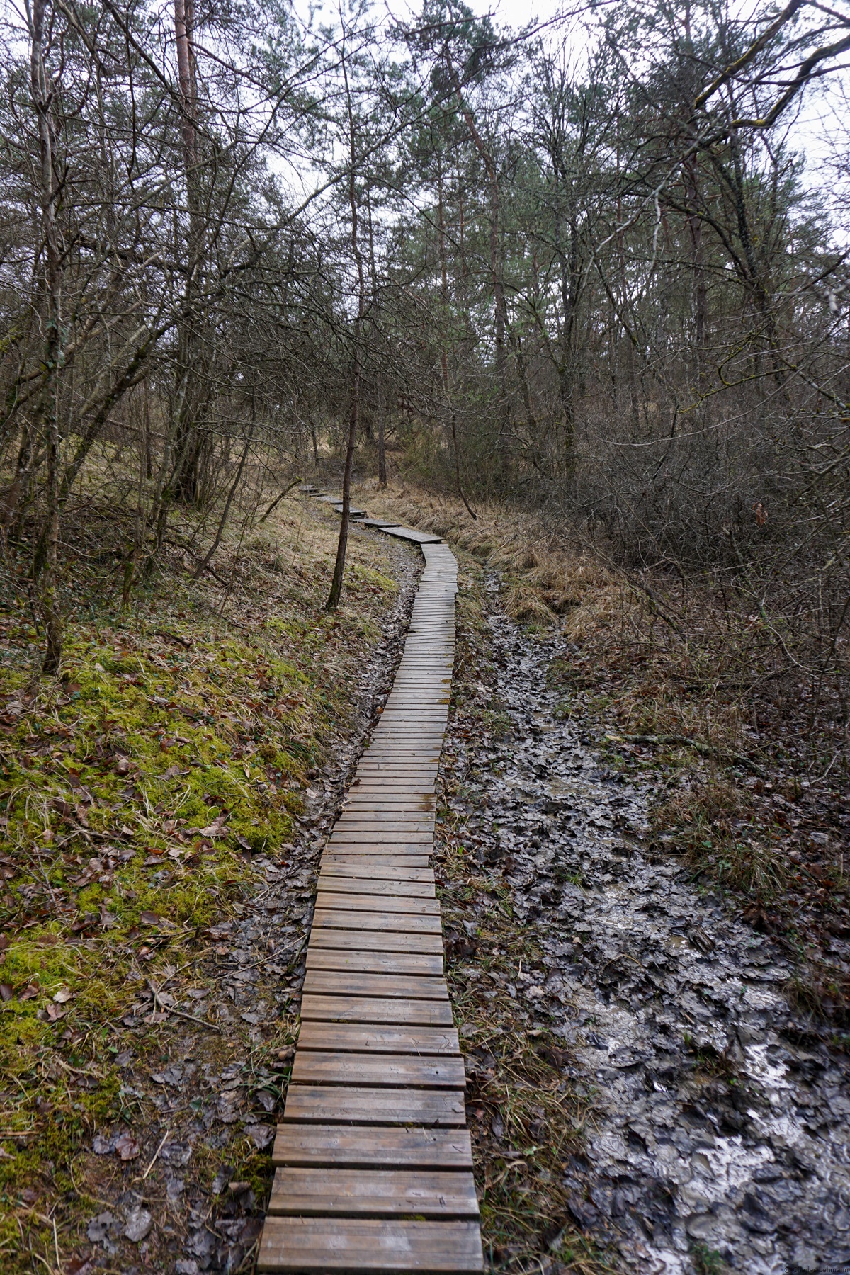 The climb to La Tuilière is often muddy and it is sometimes difficult to find a passage to avoid getting one shoes dirty. At La Tuilière, one follows a good path down to another stream which is crossed on a good bridge. Beyond, one enters a pine forest with, at the foot of these, a rather thick grass. The place is magnificent, but sensitive, which is why pontoons have been built.