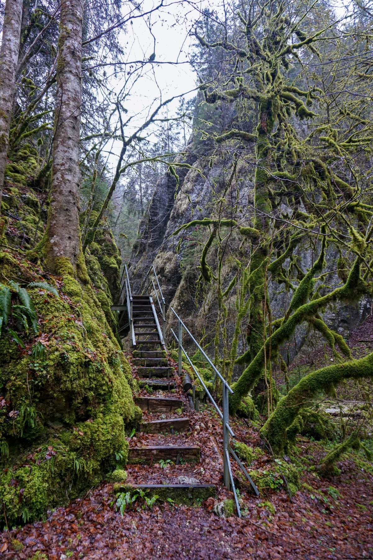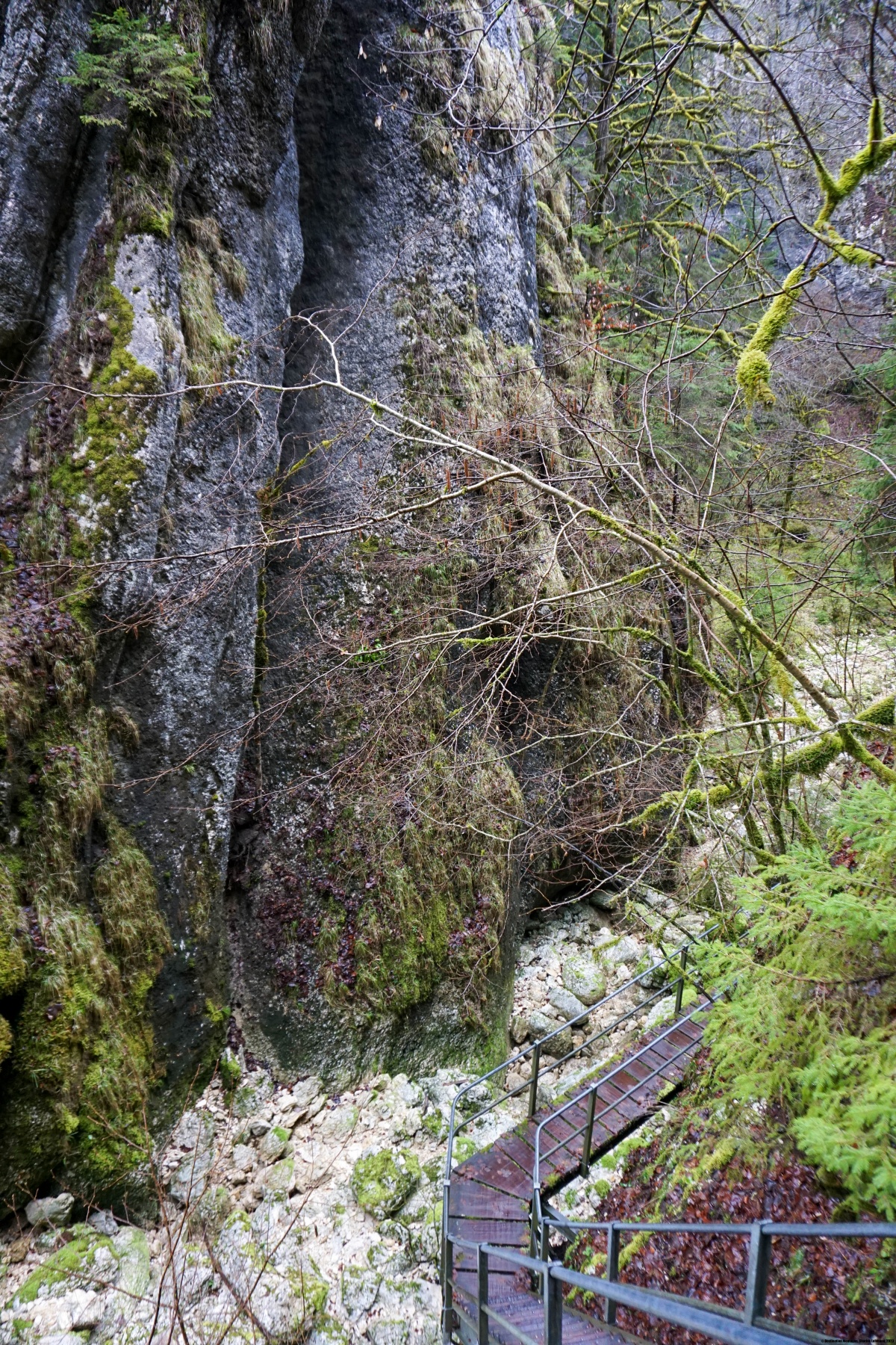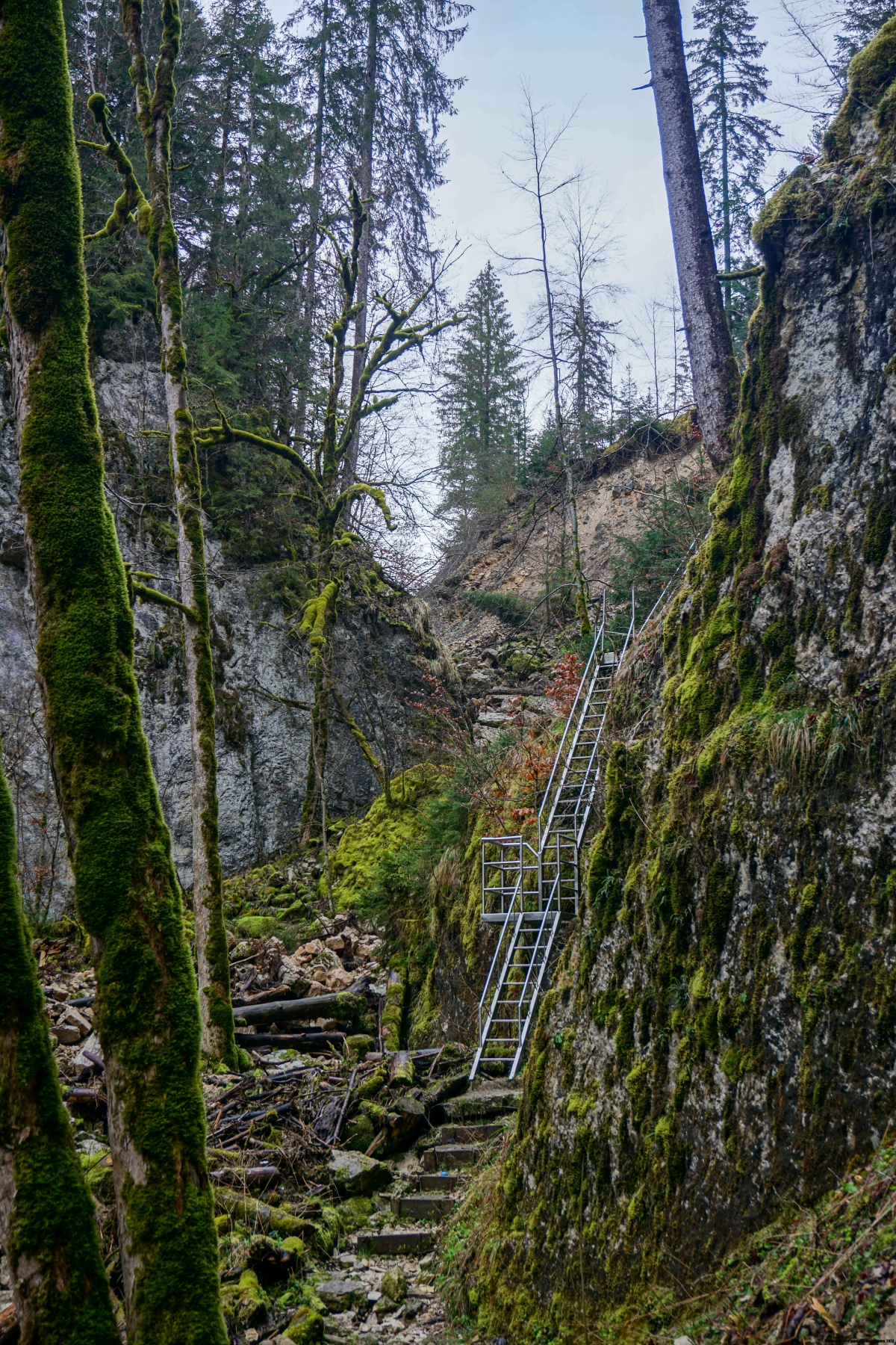 Wenn man von Biaufond ausgeht, bewegt man sich in einer Umgebung, die immer enger wird, bis man eine erste Verengung passiert. An dieser Stelle ändert der Biaufond die Richtung und steigt in Richtung einer zweiten Verengung auf. Auch hier wechselt er noch einmal die Richtung, bevor der Weg einen steilen Hang über einer Treppe überwinden muss. Bei der letzten Verengung findet sich jede Menge Abfall im Boden. Ich vermute, der musste beim Hochwasser der Ronde mitgeschleppt werden. Sehr eklig ist das aber.