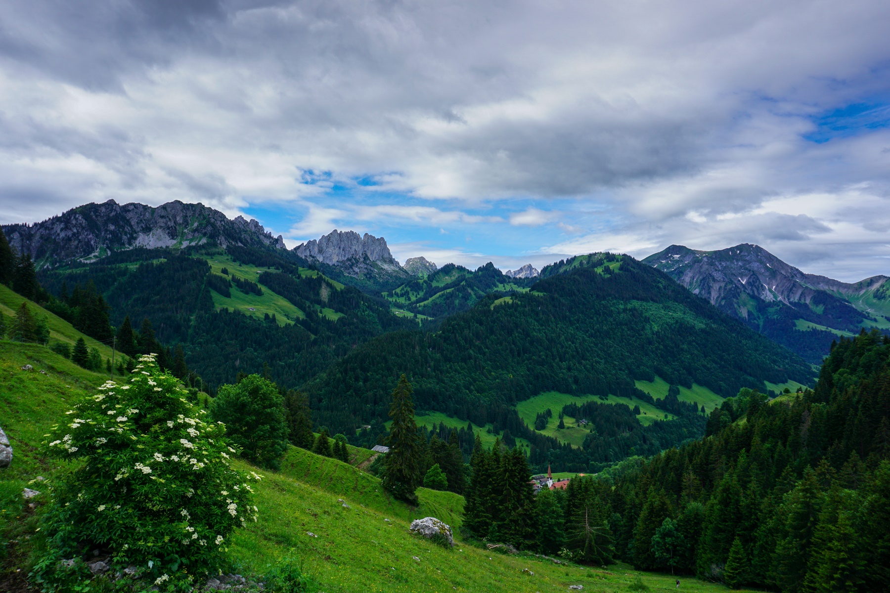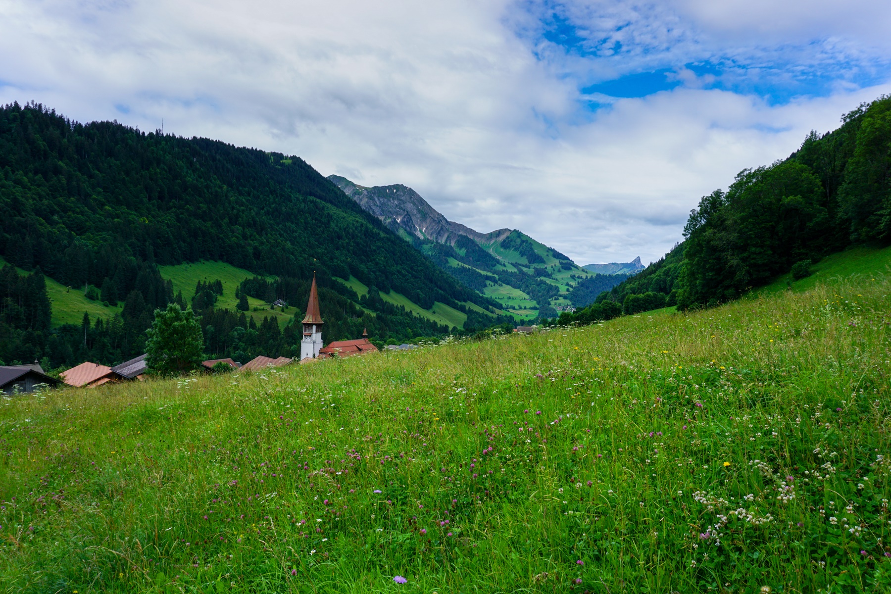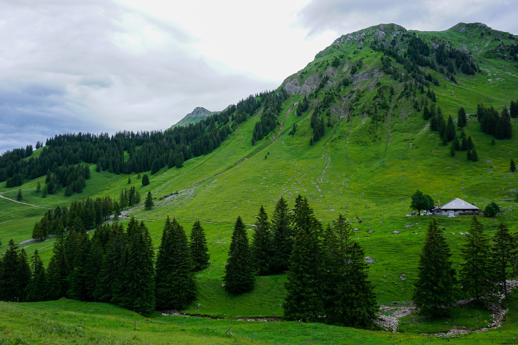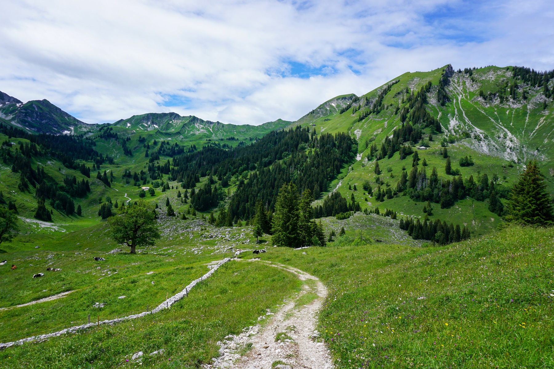 Depuis le village de Jaun, le sentier suit le torrent de l’Allmendbach, dans la forêt au début, avant de déboucher dans les pâturages. Le sentier effectue alors des zig-zags avant de rejoindre la route menant à la Ritzlialp. Depuis ce restaurant d’alpage, il suffit d’un tout petit effort pour gagner le Col des Euschels.