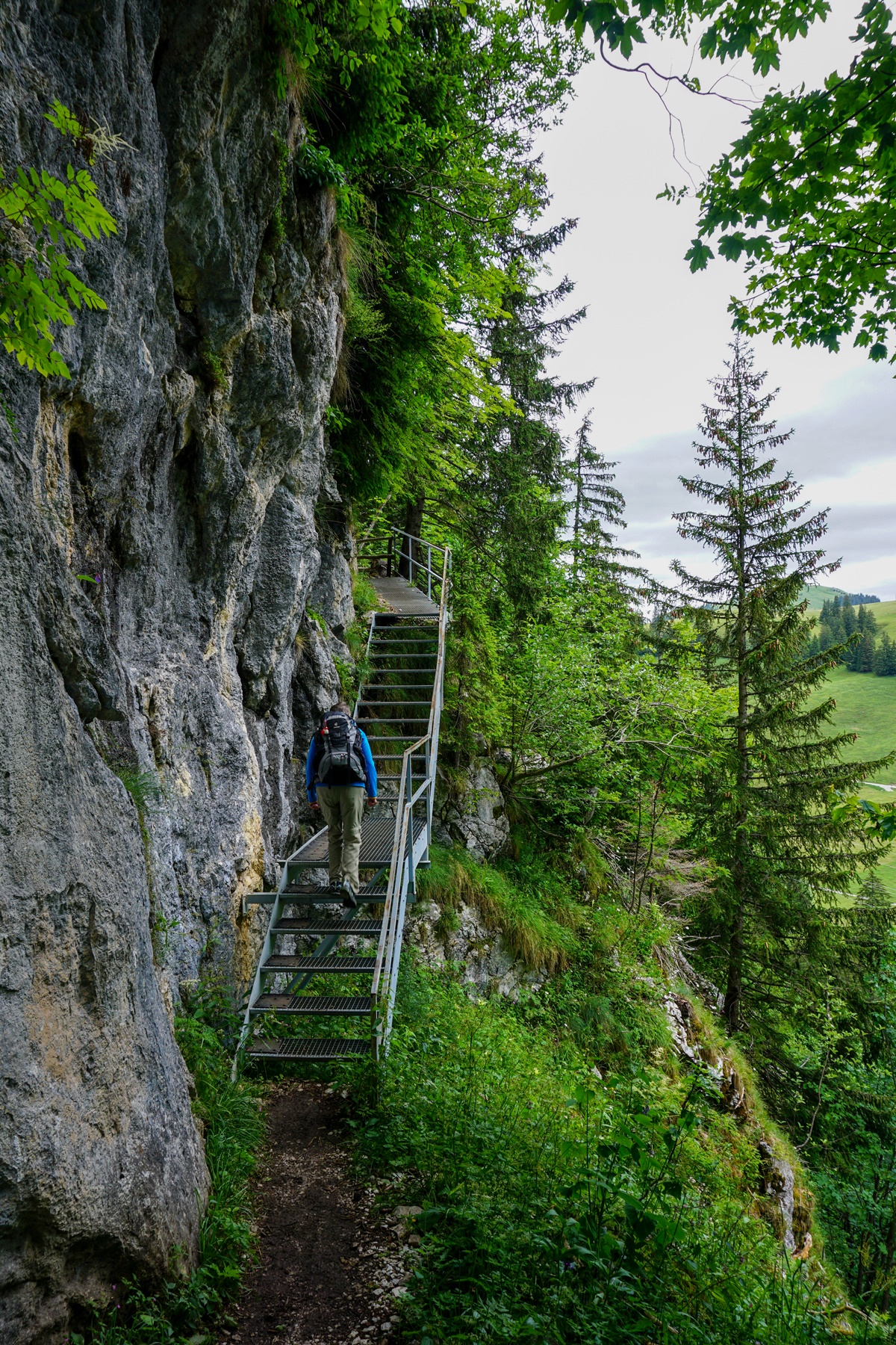 Au chalet de l’Untere Euschels, un sentier part sur la gauche pour traverser la combe et les pentes de l’arête descendant de la Spitzflue. Dans la traversée de la pente, un petit passage inattendu se présente alors : une petite échelle permettant de surmonter un ressaut. On peut alors contourner cette arête pour rentrer dans la combe de la Brecca (Breccaschlund).