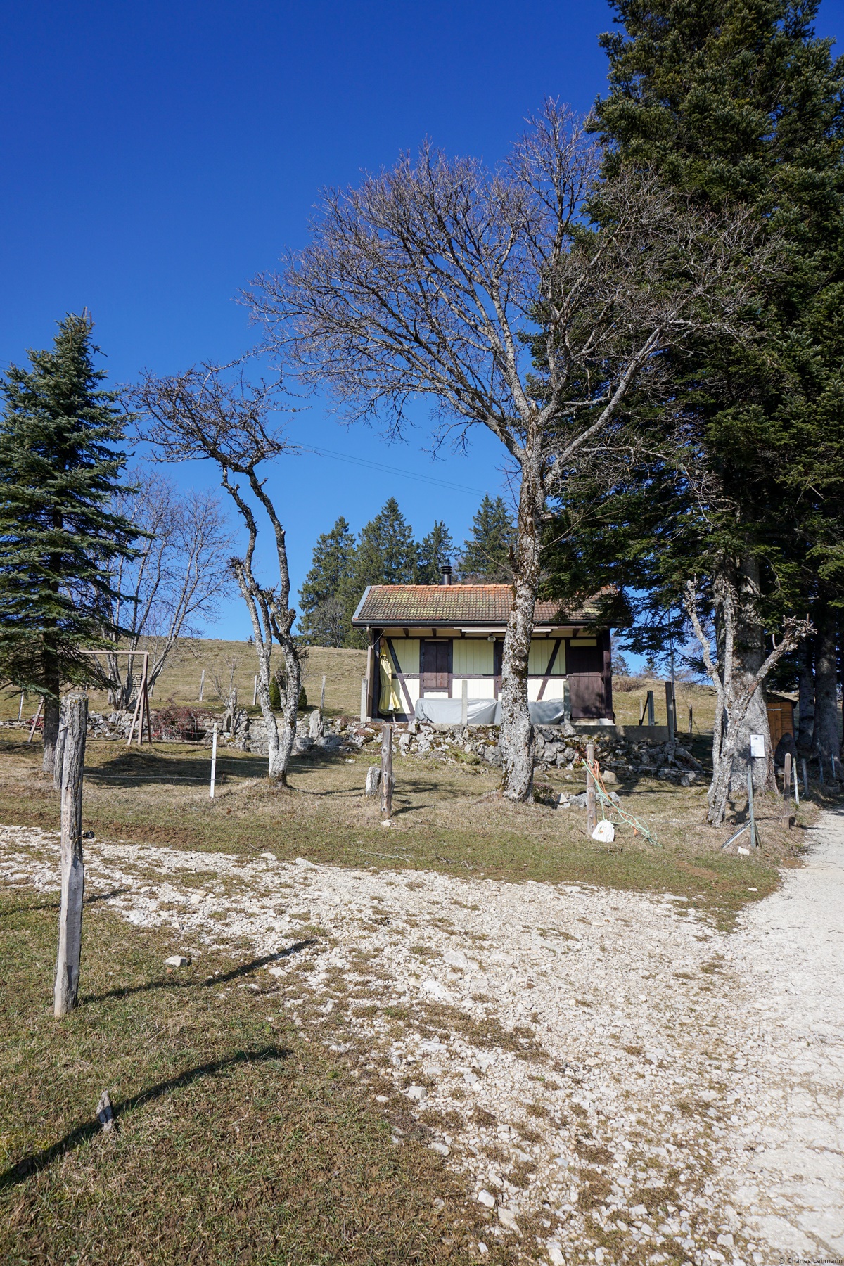 Um dorthin zu gelangen, kann man den Bois du Petit Château durchqueren (oder entlanggehen, je nach Tageszeit), um direkt unterhalb der Villa Blanche von Le Corbusier dem „Römerweg“ zu folgen. Nach einem Anstieg erreicht man wieder die Strasse Chemin de Pouillerel, die man unterhalb der Villa Blanche verlassen hat. Man muss nur den Markierungen folgen, um zum Bauernhof Gros Crêt zu gelangen, und dann einen Schotterweg nehmen, der die Teerstrasse verlässt. Man kommt dann am Getränkestand Asters vorbei, bevor man den höchsten Punkt erreicht.