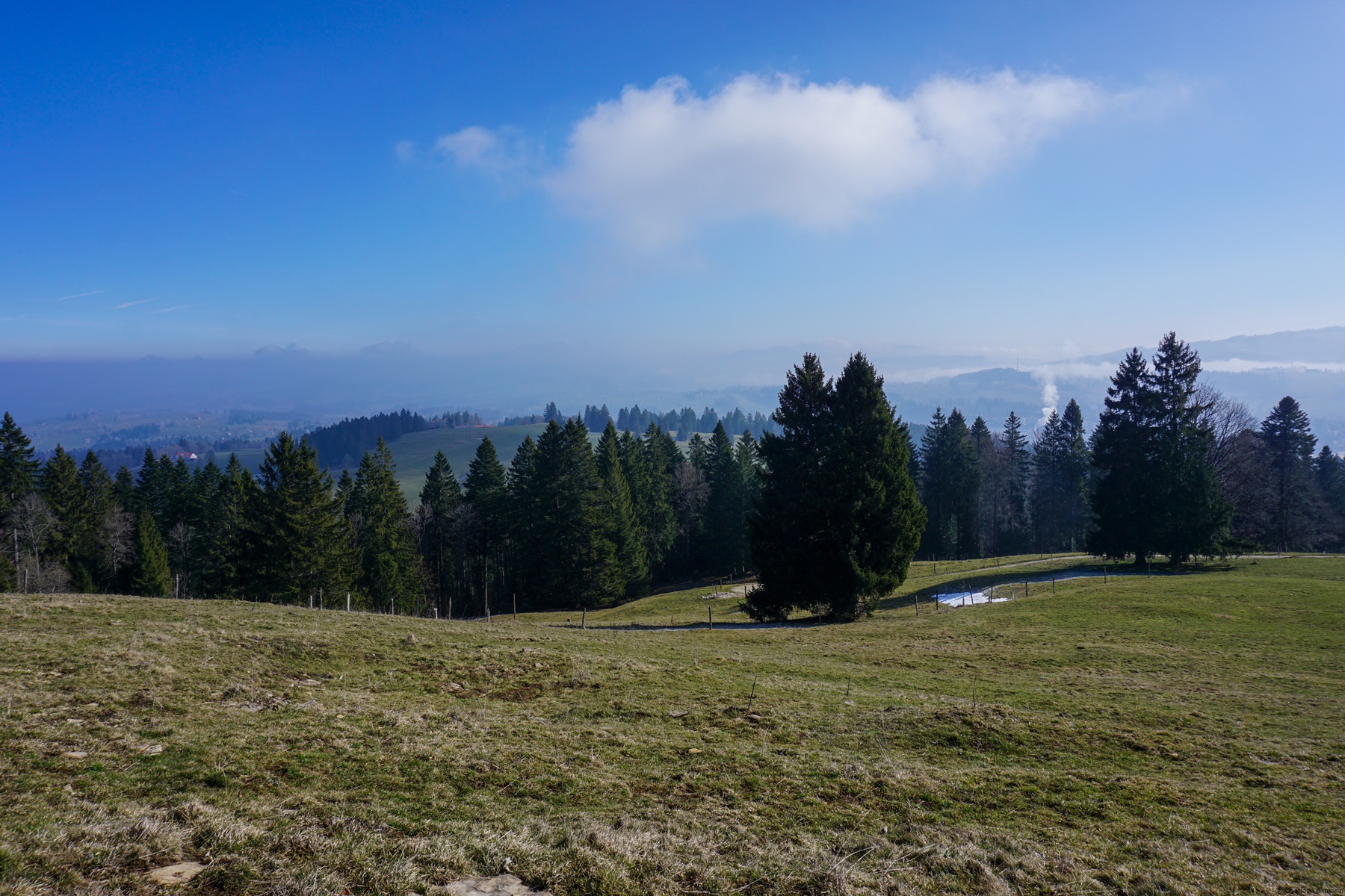 Oberhalb von La Chaux-de-Fonds gelegen, ist der Gros Crêt bei Pouillerel der höchste Punkt des Regionalen Naturparks Doubs. Er liegt hoch genug, um einen Blick auf die Alpen (von den Voralpen der Zentralschweiz bis zum Mont-Blanc-Massiv) zu bieten. Ein geodätisches Signal markiert den Gipfel und zwei Orientierungstafeln ermöglicht es, sich mit dem Panorama vertraut zu machen.