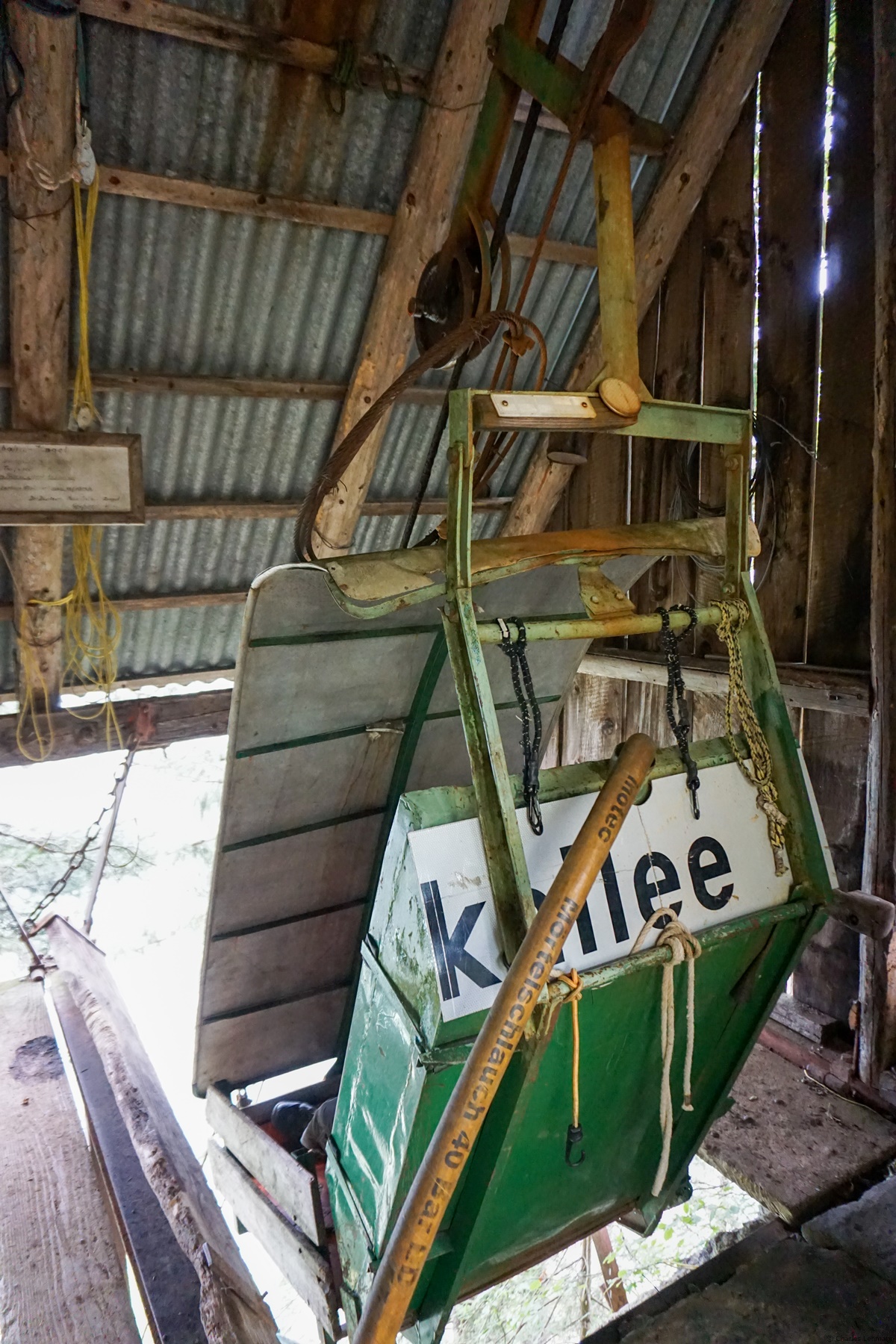 In Unter Zingel traf ich Hans der mir freundlicherweise ein Bier geschenkt hat und mir das Funktionieren der Seilbahn nach Obermatt gezeit hat. Ich glaube ich würde es kaum wagen in die Gondel zu steigen… Ich durfte ihm aber helfen der Wassertank der Gondel zu füllen. Das ist ein einfaches, aber bewährtes System: die Bahn ist 100 Jahre alt.