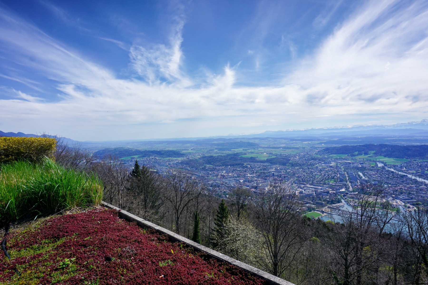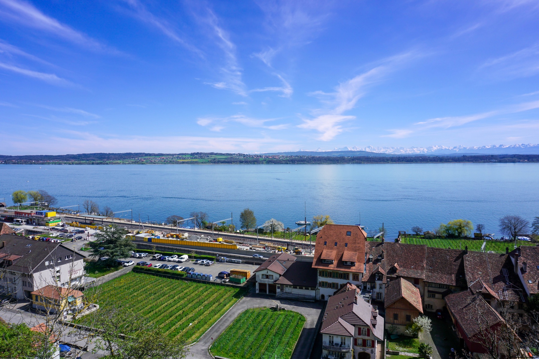Macolin is an old acquaintance to me because of the Federal Highschool of Sport. I had trained there a few times when I was much younger. So, I know that the view from there, especially the terrace of the main building, is beautiful. It must be said that you are high enough above the plateau and that you are practically in front of the mythical peaks of the Bernese Alps.