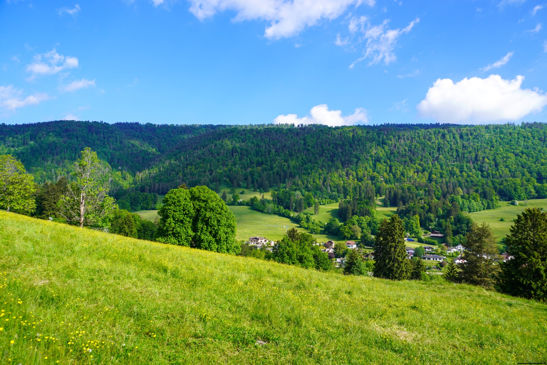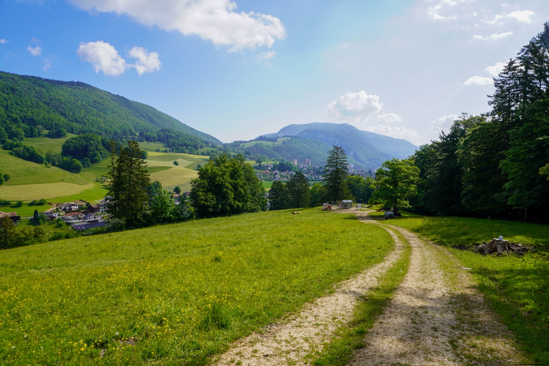 Von dort aus sind wir entlang des markierten Weges in Richtung Malleray abgestiegen, um dort den Zug zu nehmen. Der Weg ist an einigen Stellen steil, und erst wenn man zu den ersten Bauernhöfen am Fuss des Berges kommt, wird der Hang flacher. In Malleray muss man aufpassen und die Karte nachschlagen, denn ein Wegweiser führt auf die Hauptstrasse, wo man den Bahnhof erreichen kann. Es ist jedoch besser, über die Bahnlinie zu gehen, denn dort ist es viel ruhiger.