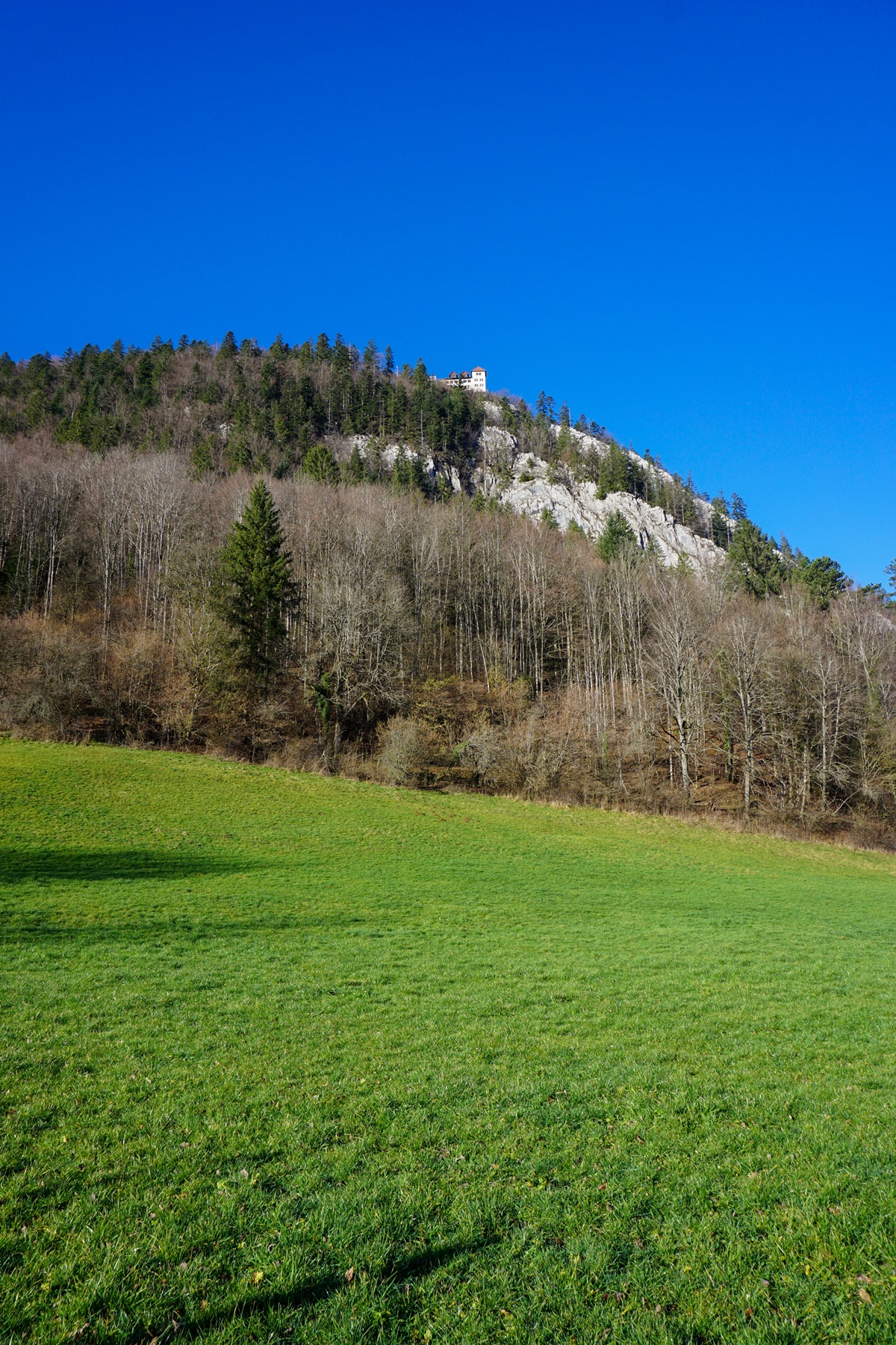 Lorsque l’on monte le Val de Travers, on ne manquera pas de remarquer au loin un curieux trait vertical surmonté d’un bâtiment. Cet endroit se trouve à l’intérieur de la séparation du Val de Travers en deux vallées : celle de Buttes et celle montant aux Verrières. De loin, on ne distingue pas clairement de quoi le trait vertical est fait. Mais il s’agit d’un éperon calcaire montant au sommet du Chapeau de Napoléon.