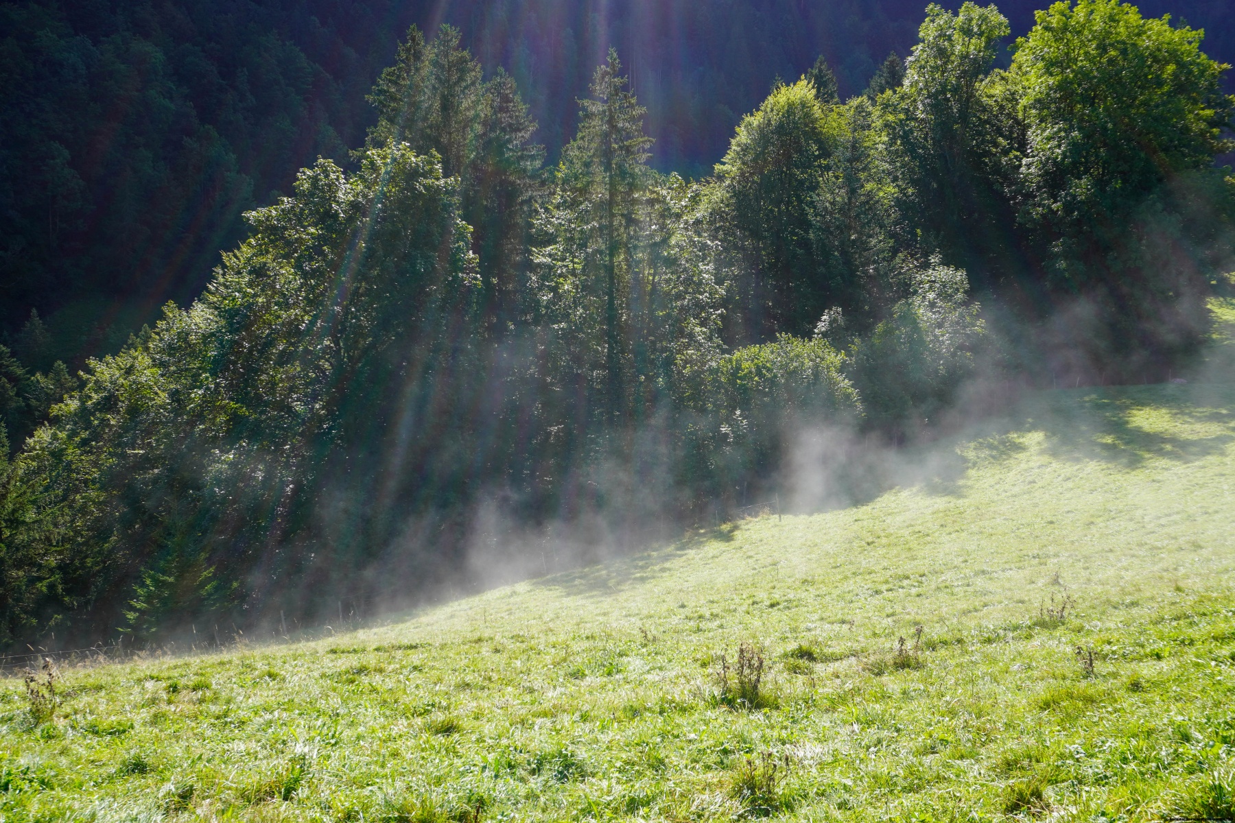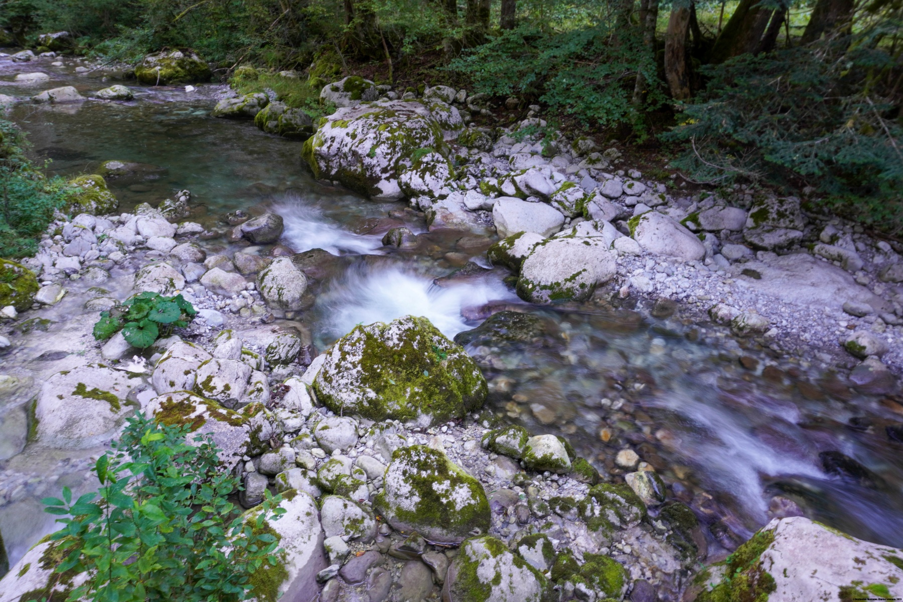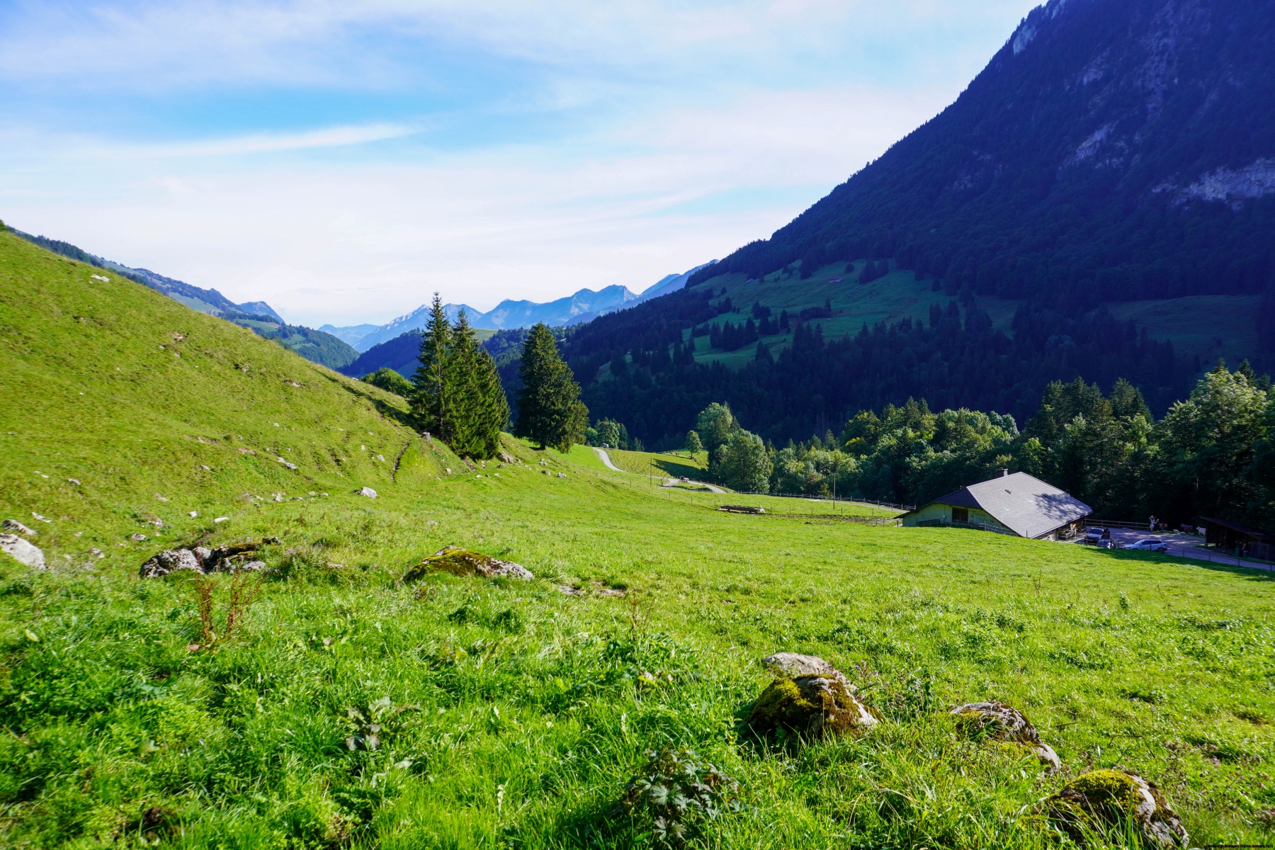 Während man bergab geht, kommt man an den Hütten von La Joux und Cases vorbei. Weiter unten öffnet sich das Tal ein wenig und bei der Croix de Fer haben wir den Weg gewählt, der über den Fluss führt und nach Pierra Devant und Les Mosses hinaufgeht. Interessant ist, dass vor einigen Jahren der markierte Weg hier entlangführte. Heute sind die Schilder abgebaut und die Markierungen entfernt worden. Der Grund ist mir nicht klar, da mir der Bauer bestätigte, dass es sich nicht um Grundstücks- oder Nutzungsrechte handelt. Anscheinend wollte man diese Markierungen nicht mehr pflegen.