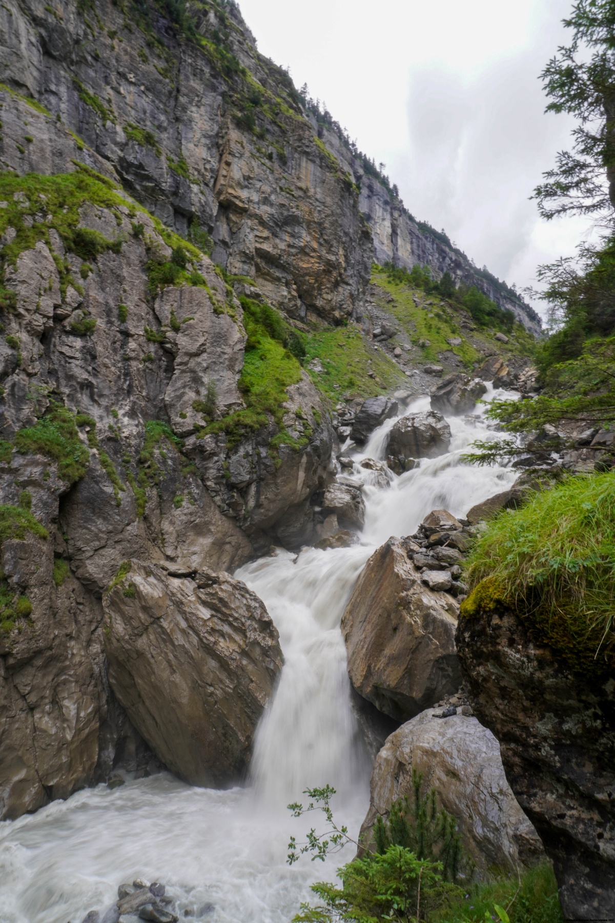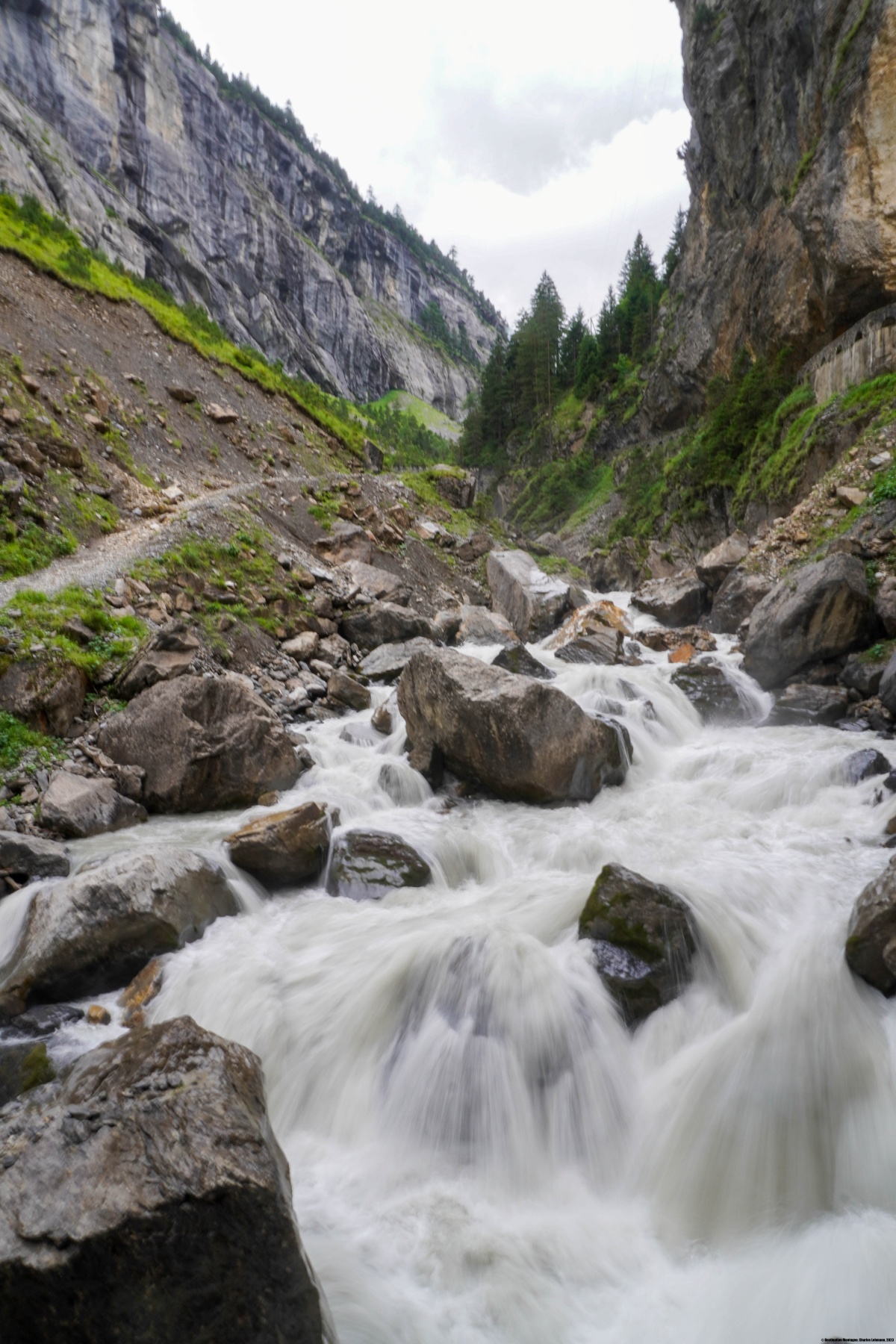 In Eggeschwand muss man ein Stückchen zurück nach Kandersteg gehen, um den Aufstieg entlang der Kander zu wandern, die sich bald in einen tosenden Wildbach verwandelt. Die Chluse ist ein beeindruckender Ort, da das Wasser einen ohrenbetäubenden Lärm erzeugt, den man nur an wenigen anderen Orten der Schweizer Alpen findet, da die Ströme oft umgeleitet werden, um Staudämme zu speisen.