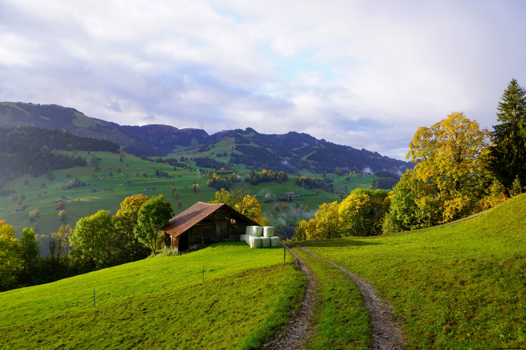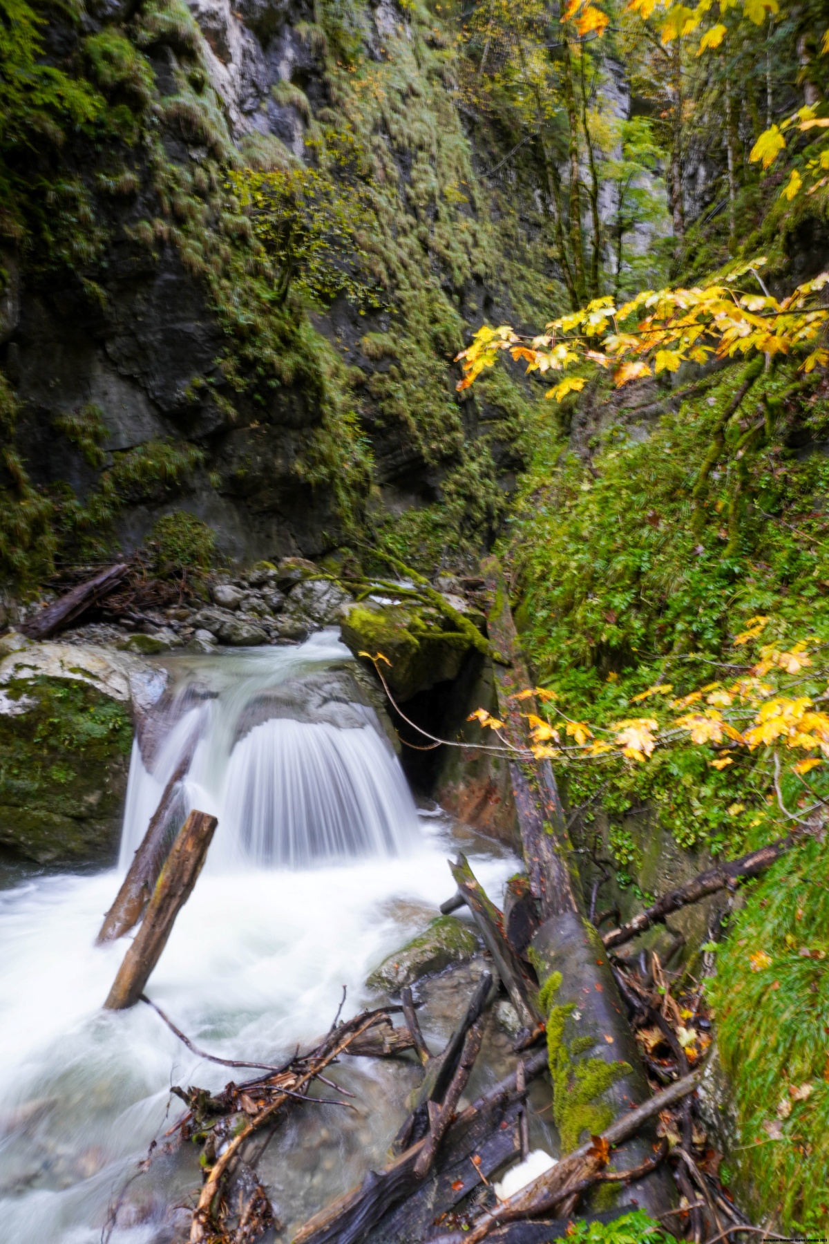 Für den Rückweg folgten wir dem Weg, der bald auf die Strasse nach Morgete stiess. Dabei konnten wir die Brücke überqueren, die über den Morgetebach führt und auf der anderen Seite in die Schlucht hinabführt. Dort unten angekommen, folgten wir dem Weg, der an den alten Thermalbädern von Weissenburg vorbeiführt. Der Weg ist anfangs schmal, wird aber bald zu einem guten Waldweg, der an den zweiten Thermalbädern vorbeiführt und zum Bahnhof von Weissenburg führt.