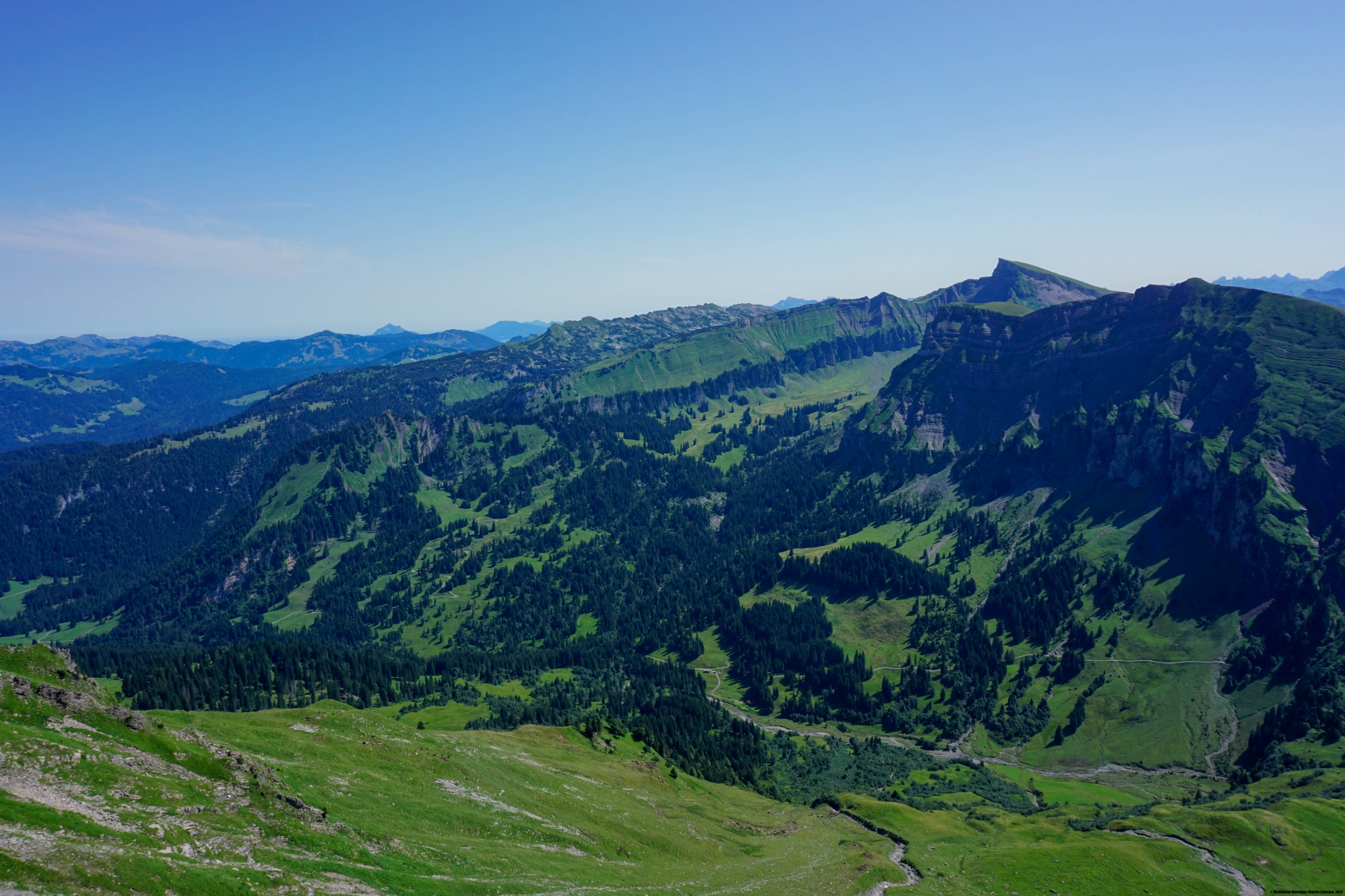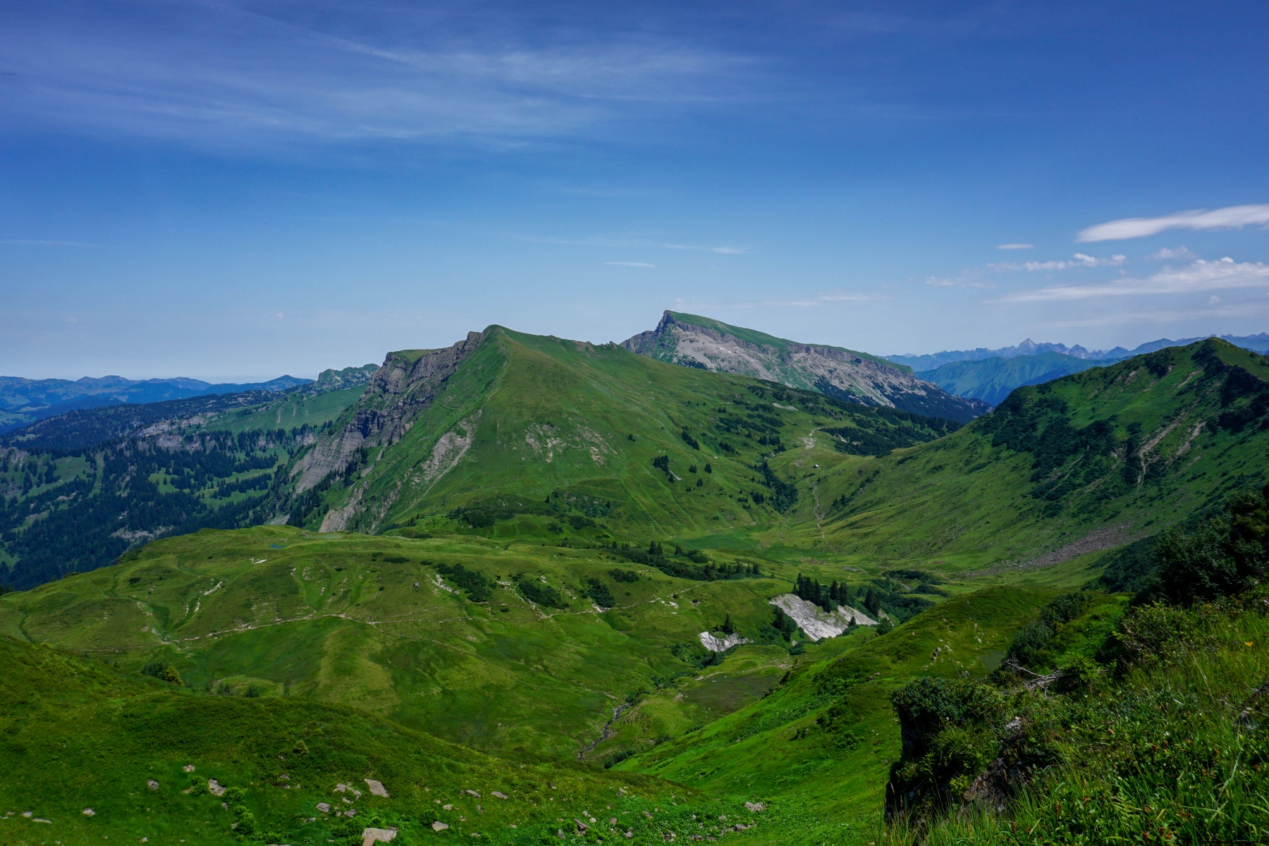 The Bregenzerwald, a mountain region in Vorarlberg, Austria, has several interesting peaks that offer great views. The Hoher Ifen, which is on the border between Austria and Germany, is one of these. The Diedamskopf, which is a neighbour of the Hoher Ifen, is another. Although it is a little lower than the Hoher Ifen, the fact that it is isolated from the surrounding peaks means that it offers some great views.