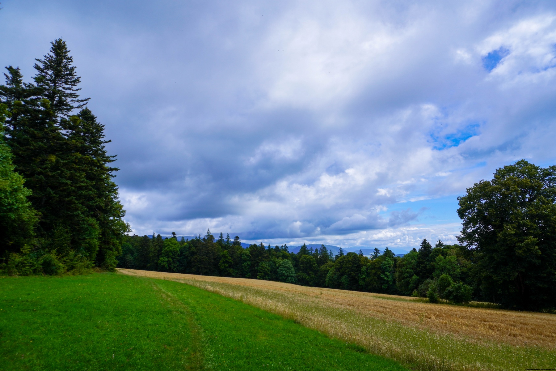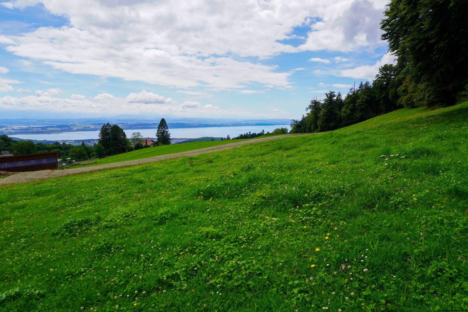 After the funicular, we went to see the meridian gauge to return to Chaumont and then go to the highlands to reach Petit Chaumont. The whole path is essentially through the woods, which means that there are very few viewpoints on the Swiss plateau. It is only when you arrive at Enges that you can see the Lake of Neuchâtel and the plateau. Unfortunately, you soon must cross the forest again to arrive at Cressier where you are too low to have a clear view.