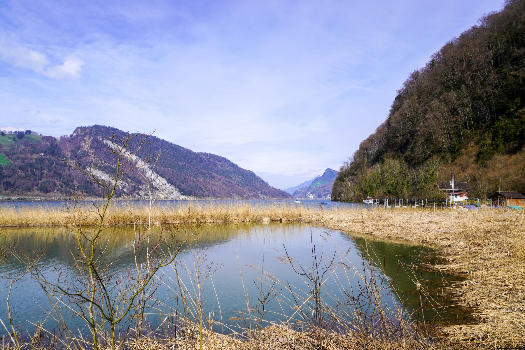 Once we had reached the shore of the Alpnachersee, we crossed a re-naturalized area that used to be a gravel pit. After crossing the Sarner Aa, we had to walk around Alpnach airport and cross the Kleine Schlieren. We then walked around a boat workshop before reaching Alpnachstad station.