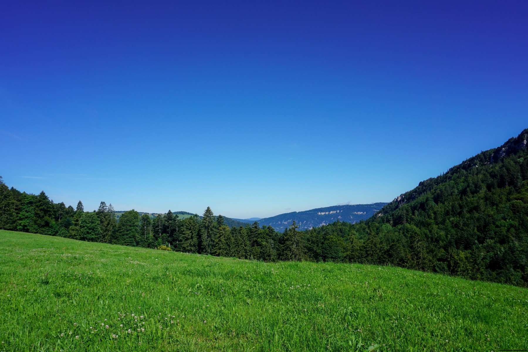 A small descent to a pass and a short stretch of forest, and you soon reach the Obergrenchenberg pastures. Although the marked trail is a little lower down, it is worth taking a path that is marked on the map and runs along the Wandflue. This allows for a view of the Granges region.