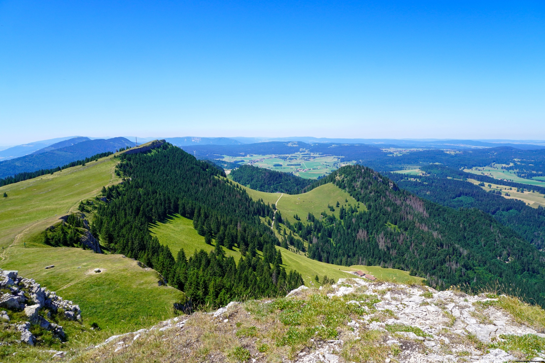 Pour descendre vers Ste-Croix, il vaut la peine de suivre la crête, nécessitant une courte montée, pour passer par les Petites Roches. Ce petit sommet offre une belle vue sur la région de l’Auberson et de la Cote Aux Fées. Pour la descente, nous avions optés pour l’itinéraire numéroté. Celui-ci est un peu plus agréable à parcourir que la descente directe, car moins raboteuse.
