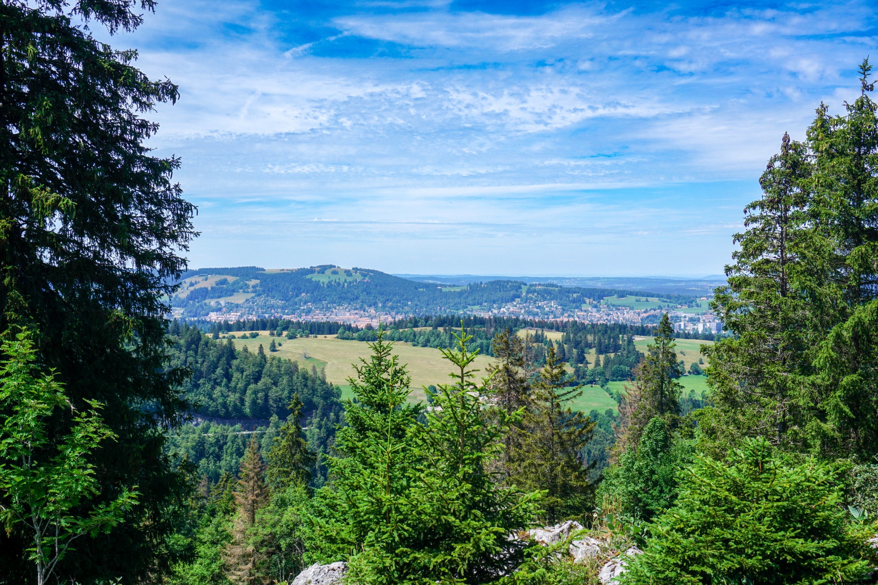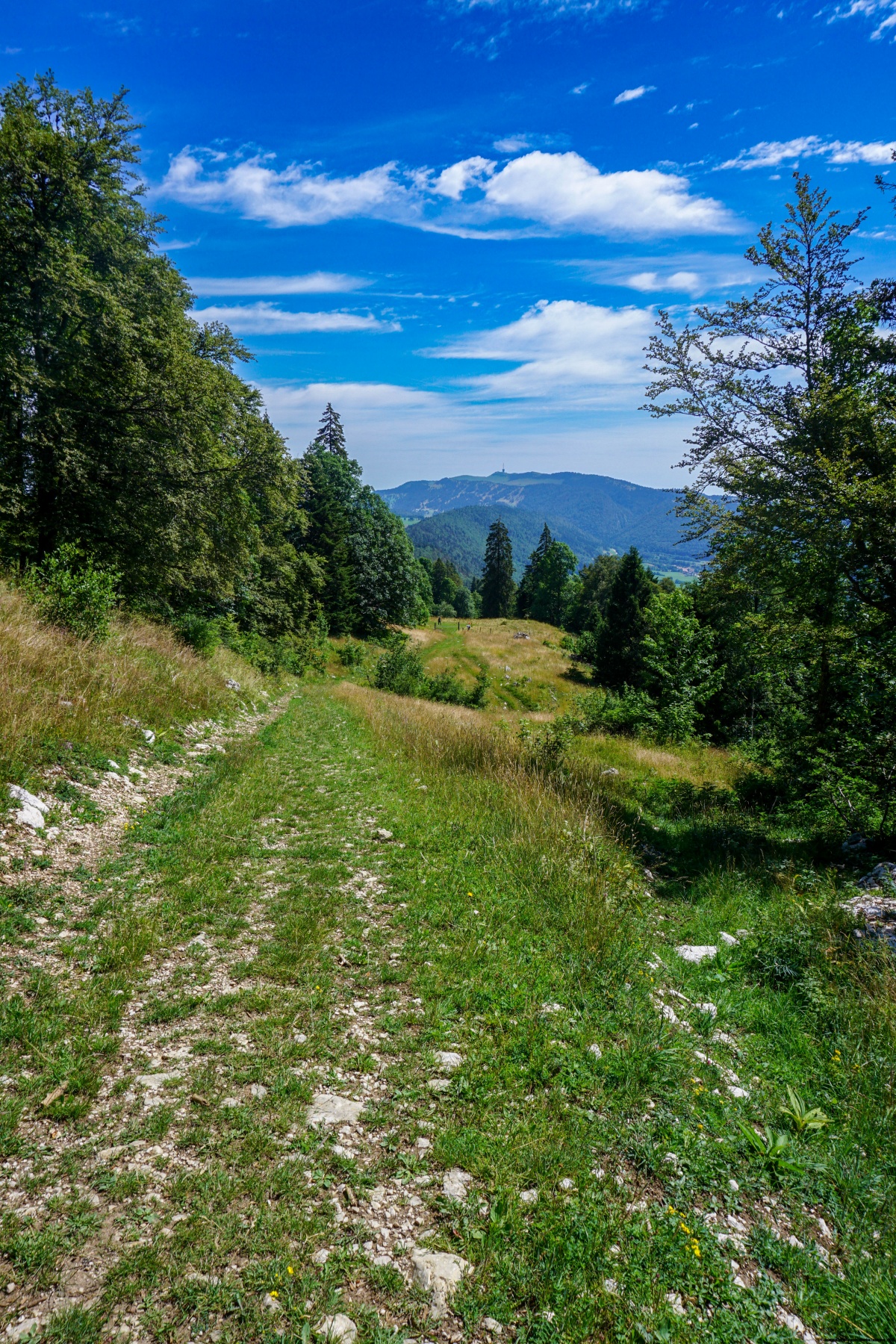 Near the top, there is an unusual view of Lake Neuchâtel and the Val de Ruz. However, trees prevent a completely unobstructed view.