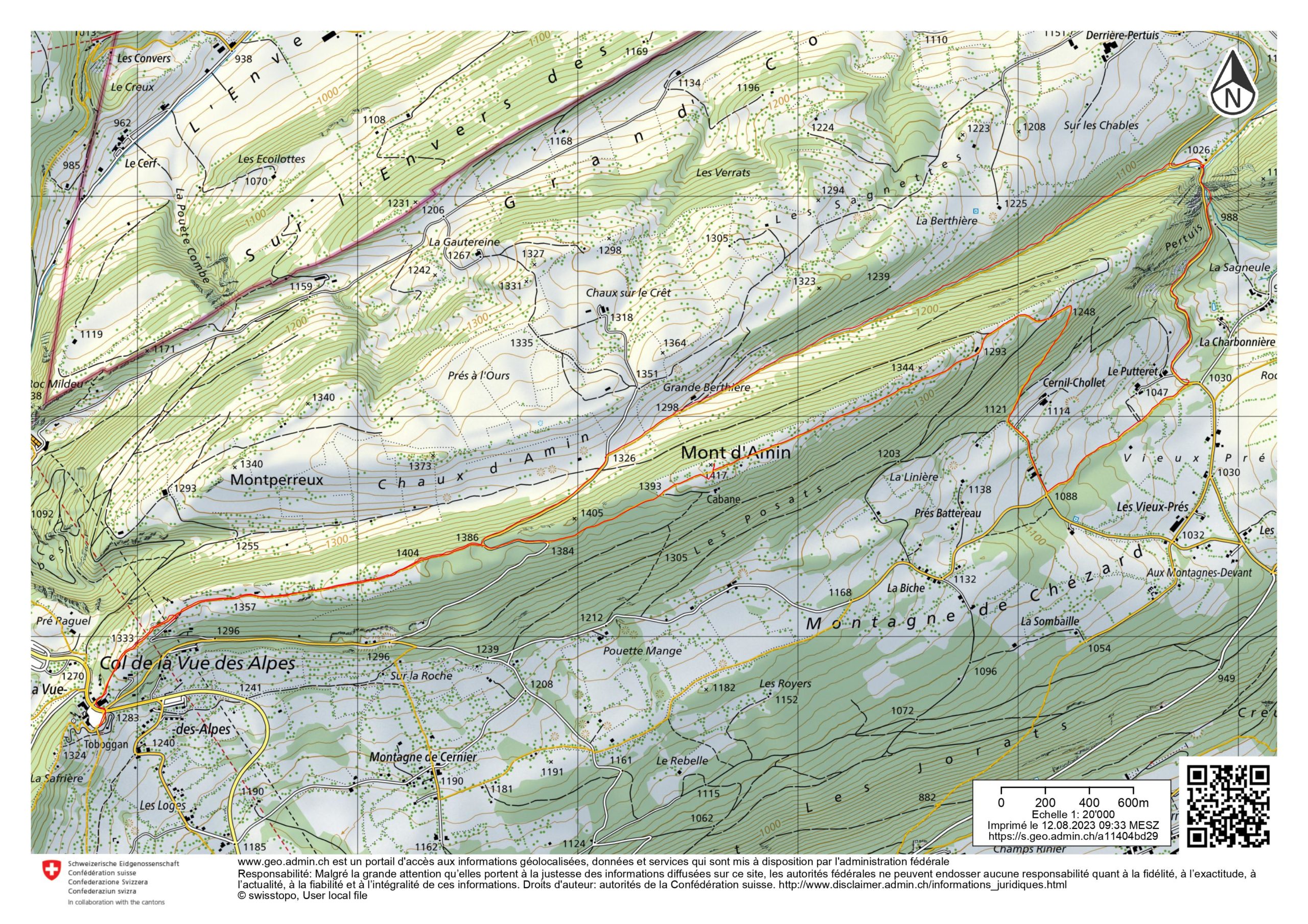 Route: Col de la Vue des Alpes – Mont d’Amin – Le Putteret – Pertuis – Grande Berthière – Col de la Vue des Alpes