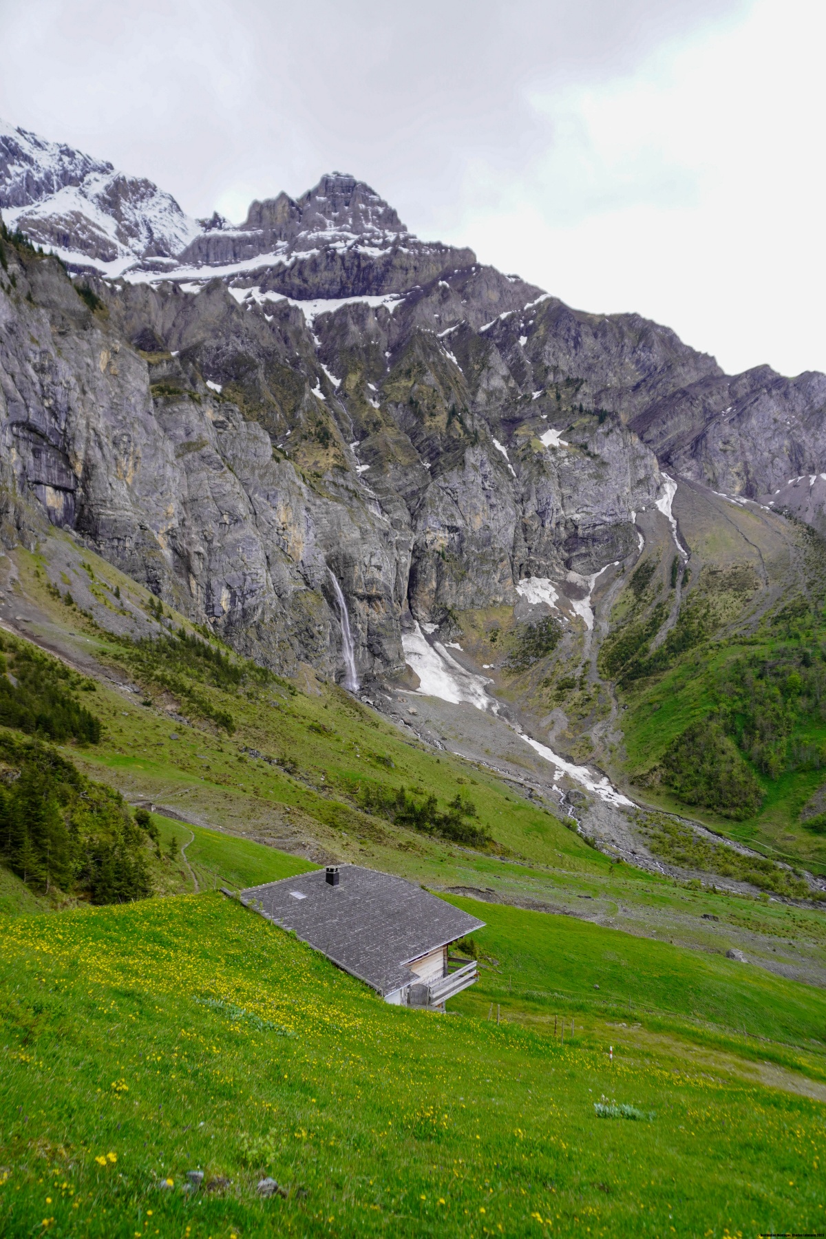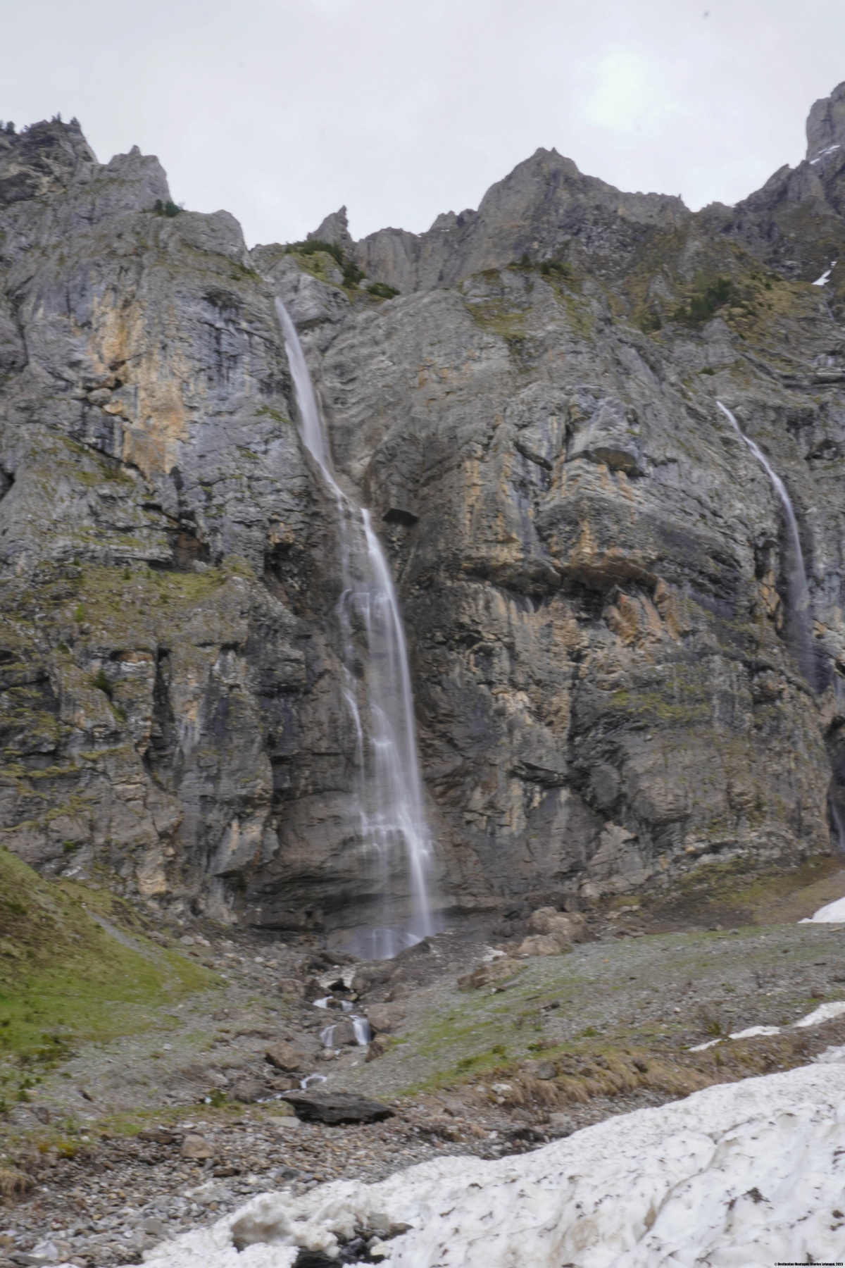 A special peak is located opposite the village of Adelboden. It is a long ridge forming a half circle. It is less well known than the neighboring Wildstrubel, but its somewhat twisted appearance makes it an interesting mountain. At its foot is a rocky cirque with a few waterfalls falling from a kind of shell.