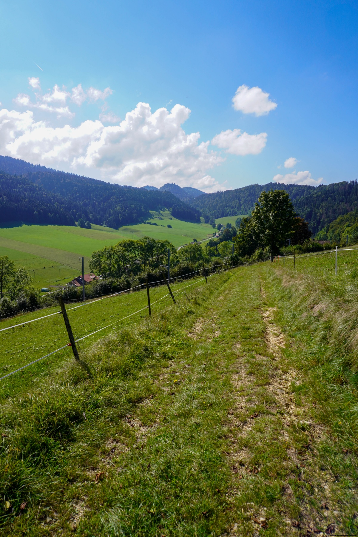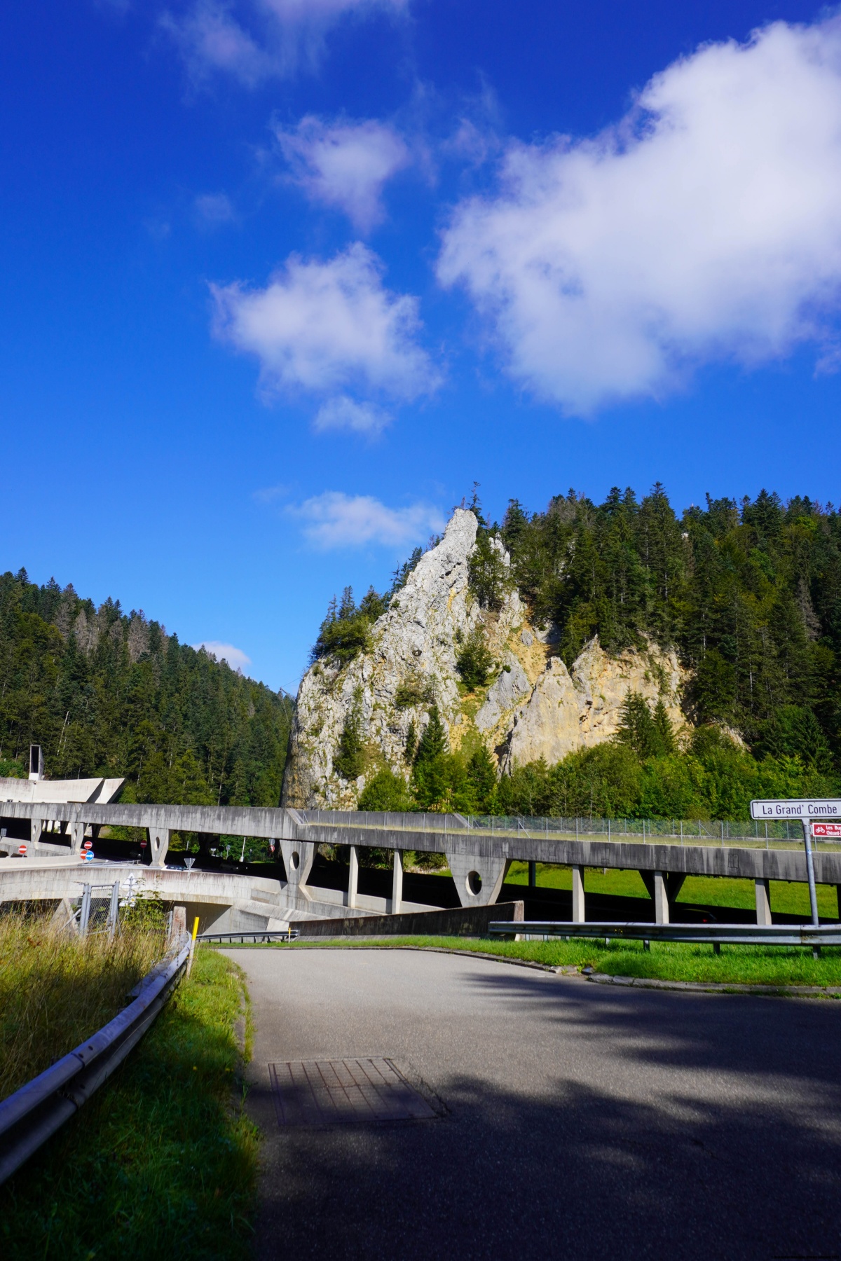 Weiter sind wir dem markierten Weg gefolgt, der über die Rue de la Vue des Alpes führt und in Richtung Reymond hinauf geht, um auf der anderen Seite in Boinod hinunterzuwandern. Von dort aus sind wir, im Gegensatz zum ersten Mal, dem markierten Weg hinauf zum Col de la Brûlée gefolgt. Dies hat uns ermöglicht, dem markierten Weg hinunter in Les Combes zu wandern und an die Stelle zu gelangen, die nicht gerade sehr einladend ist, wo die Rue de la Vue des Alpes aus dem Tunnel heraus und gleich wieder in den Mont Sagne-Tunnel hineinführt.