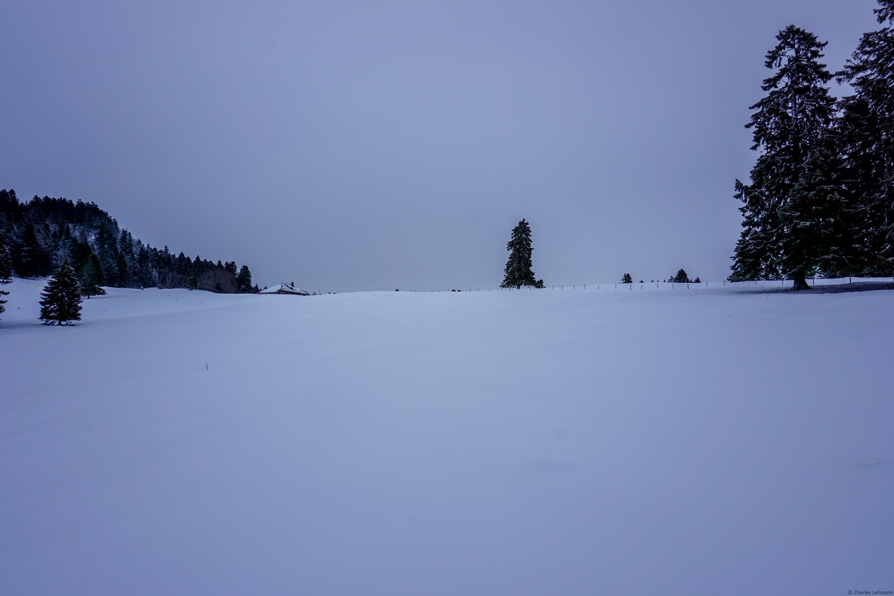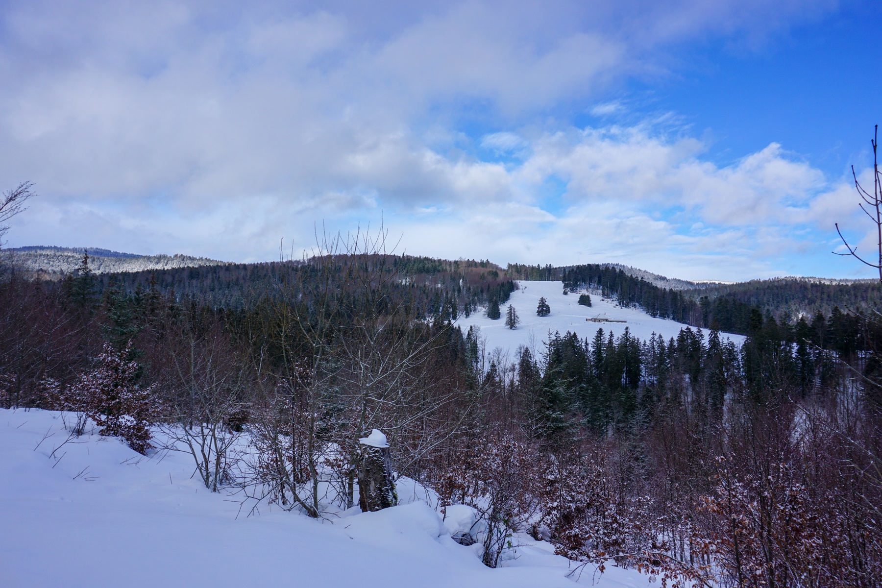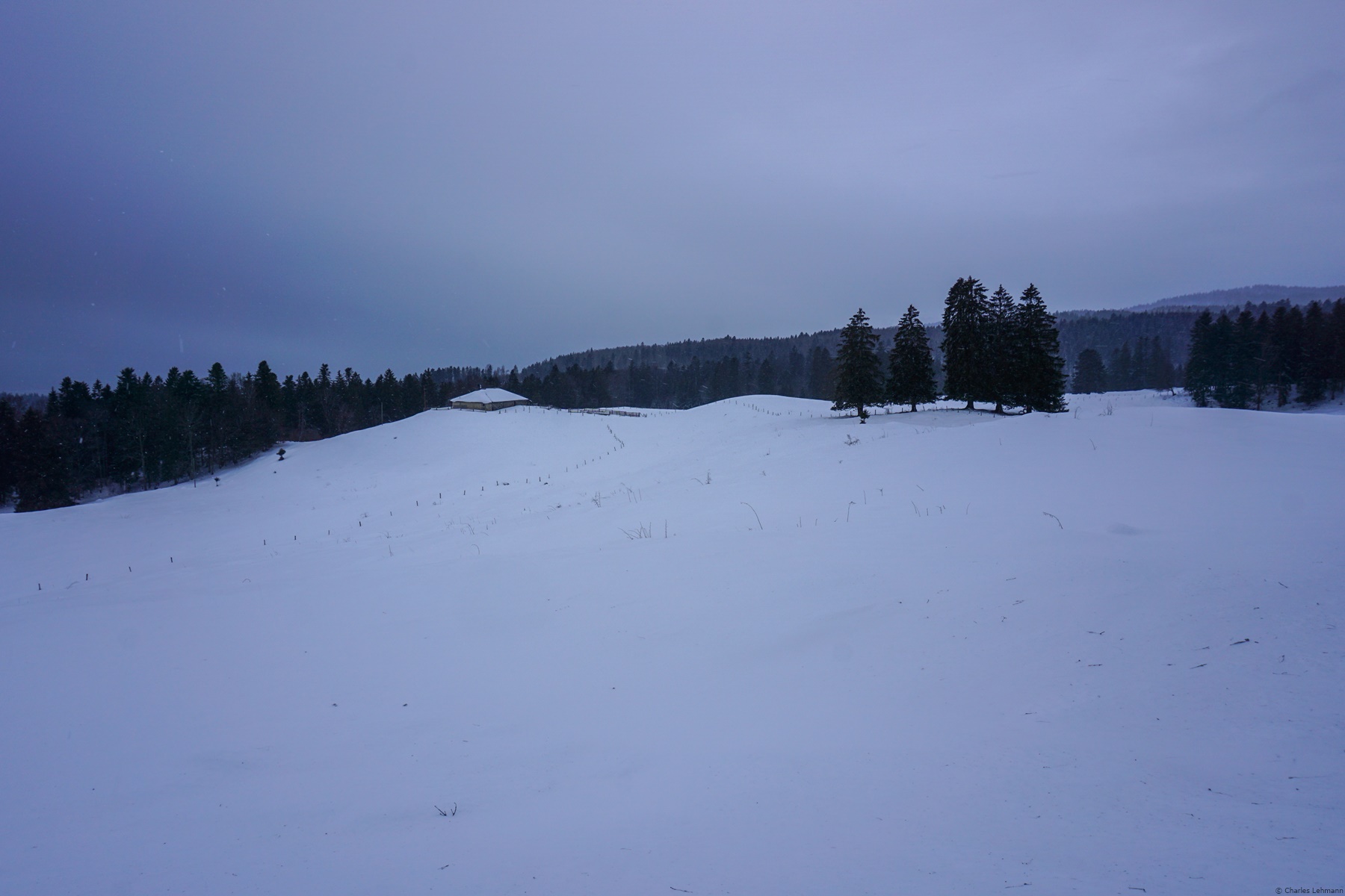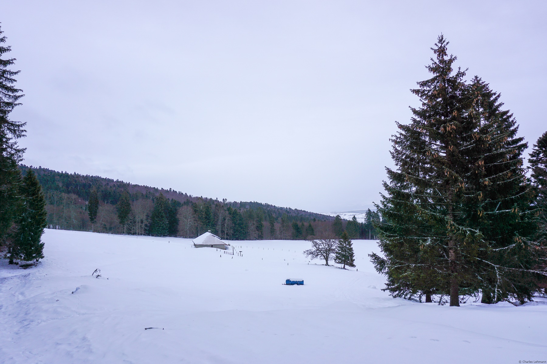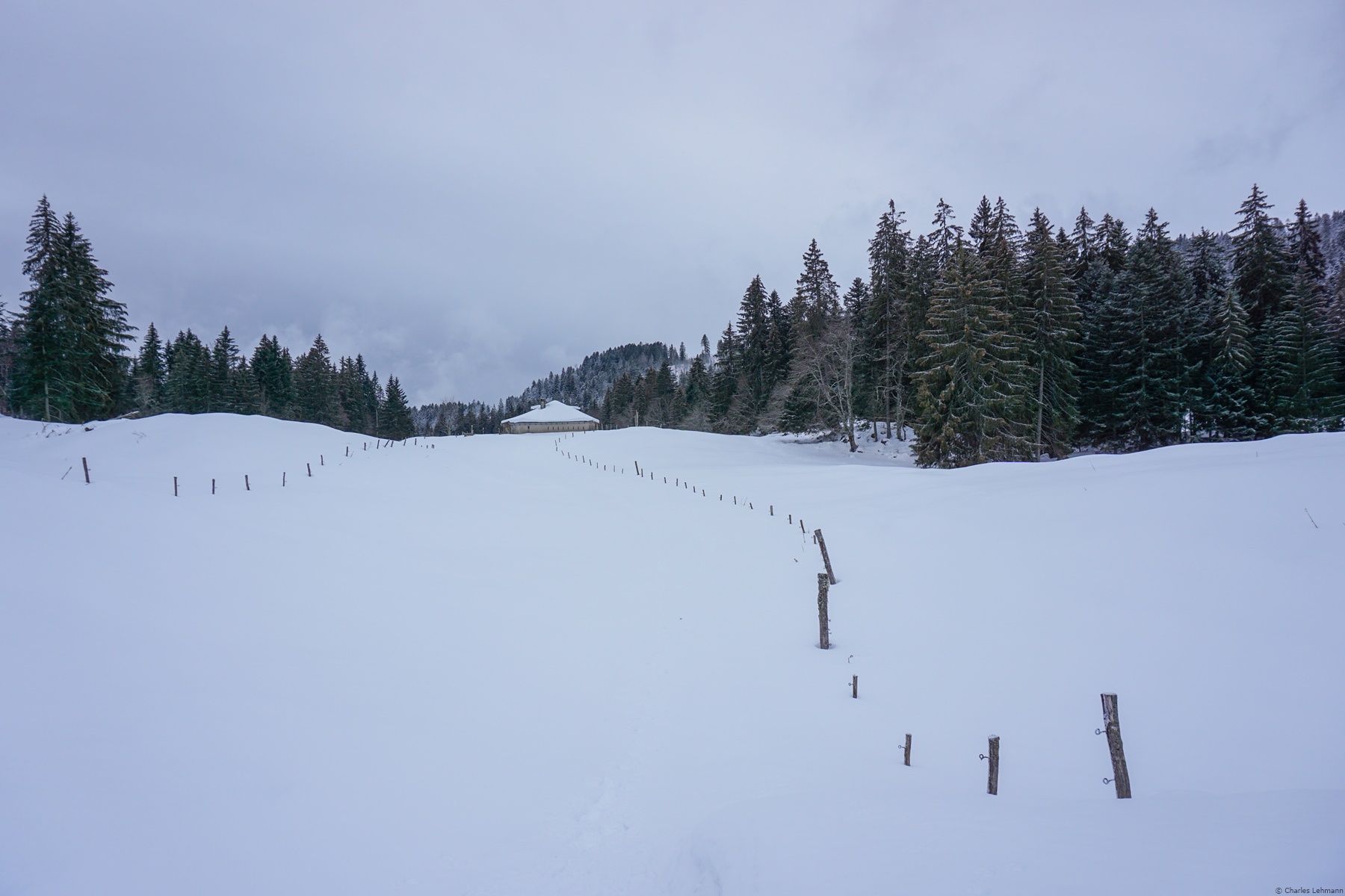 I must also draw attention about this snowshoe hike. Indeed, the route crossing the Franc Federal District of Noirmont, one must scrupulously follow the marked trails in winter. The only sprain that I allowed myself was to cross the Orgères pastures, since it is open ground. Above the pastures I followed the marked path to the Route des Montagnes, which serves as the limit of the Franc District. At the Bois du Ministre and the Jubillet, one crosses the Franc District again, but staying on the official trails, it does not really pose any problems.