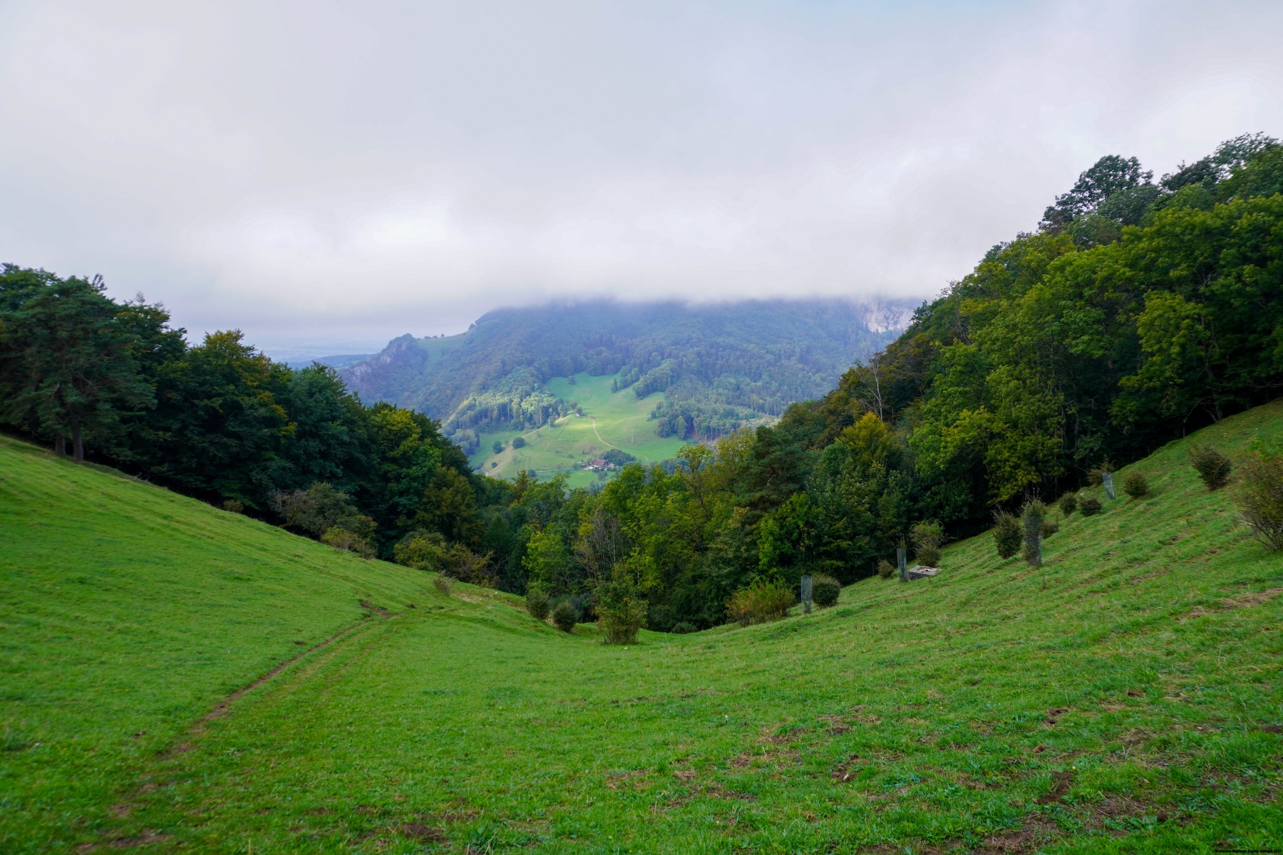 Anstatt direkt zum Roggenflue hinaufzugehen, sind wir entlang des Wanderwegs, der unter dem Roggen hindurchführt, gewandert. Weiter vorne in Flüebrunnen sind wir auf einen Waldweg eingebogen, der weiter oben auf den Kamm des Roggens führt und von dort aus zum Roggenflue.