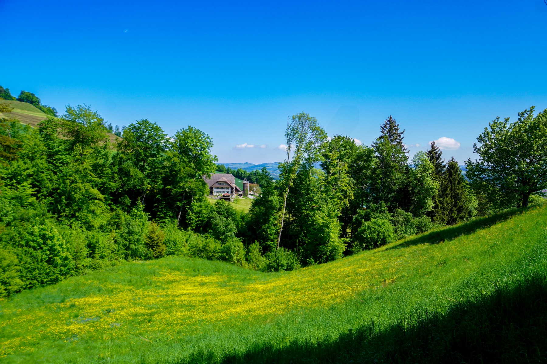 We started in Toffen and followed a stretch of the Gürbe before crossing the small plain and climbing towards Eggenhorn. Even though we are on the Swiss Plateau and in a relatively flat area, the climbs are very steep in places. At Eggenhorn and Hofstetten, the view opens to the Bernese Alps as well as to the Emmental. Konolfingen can be clearly seen, and the castle of Worb can be glimpsed.