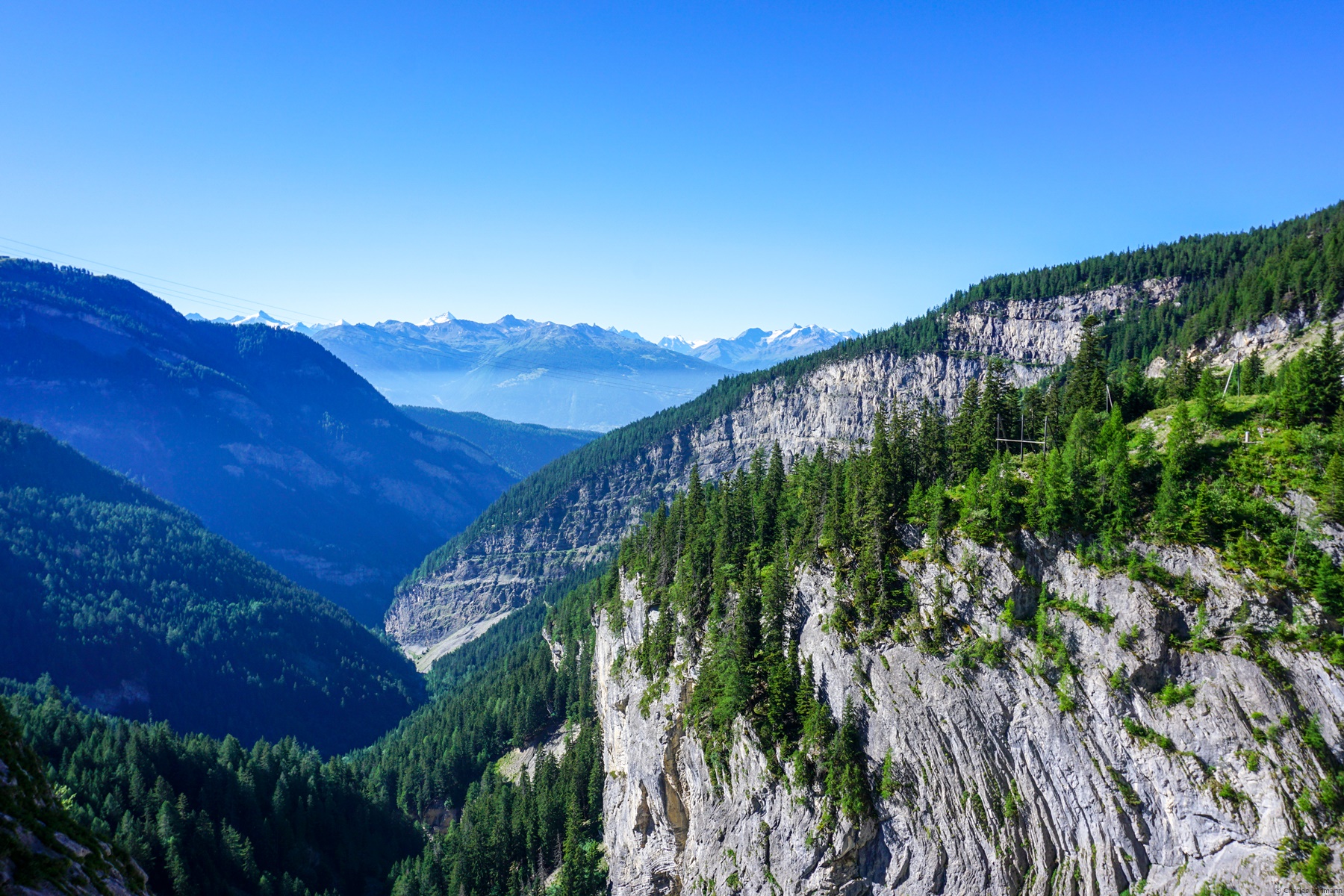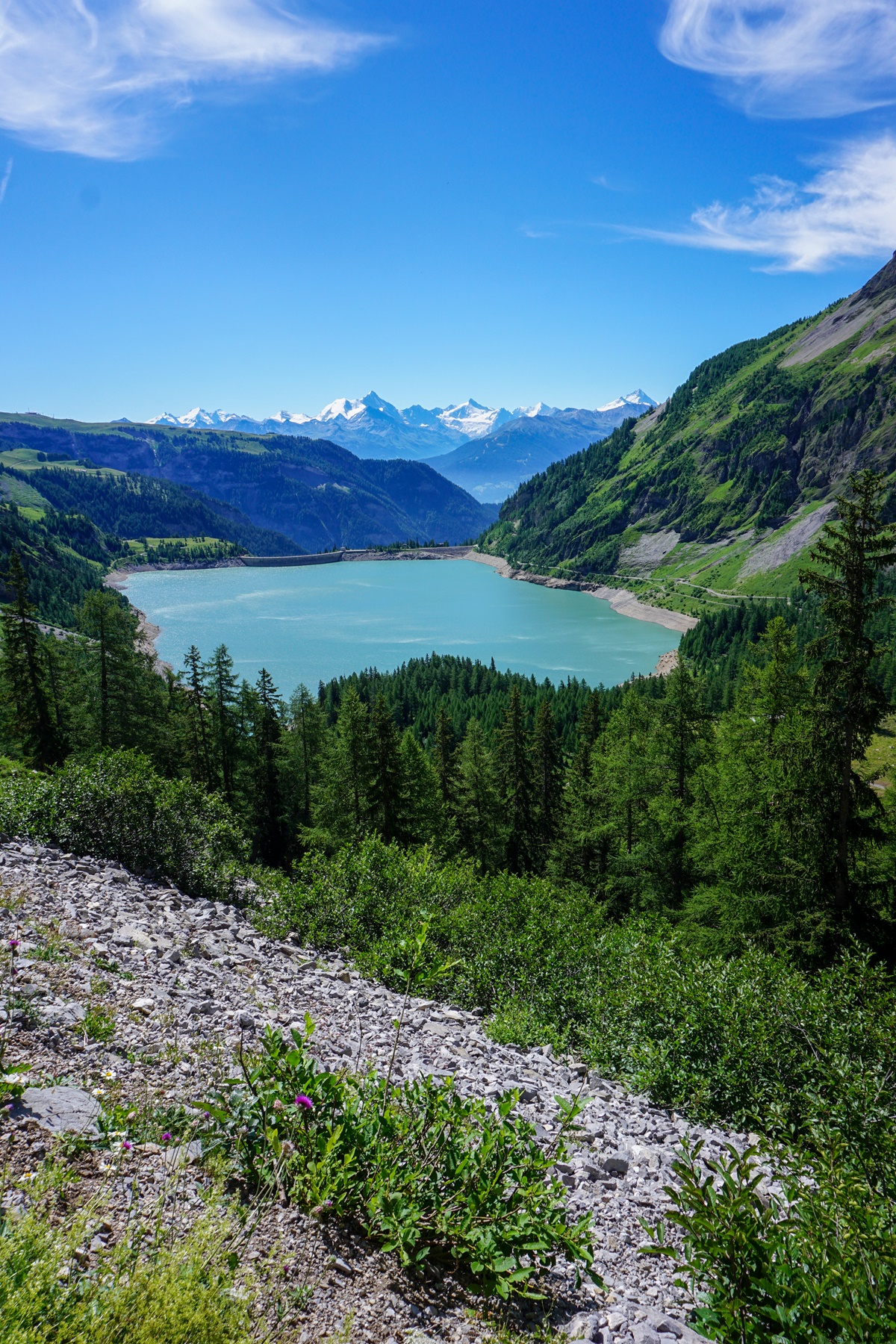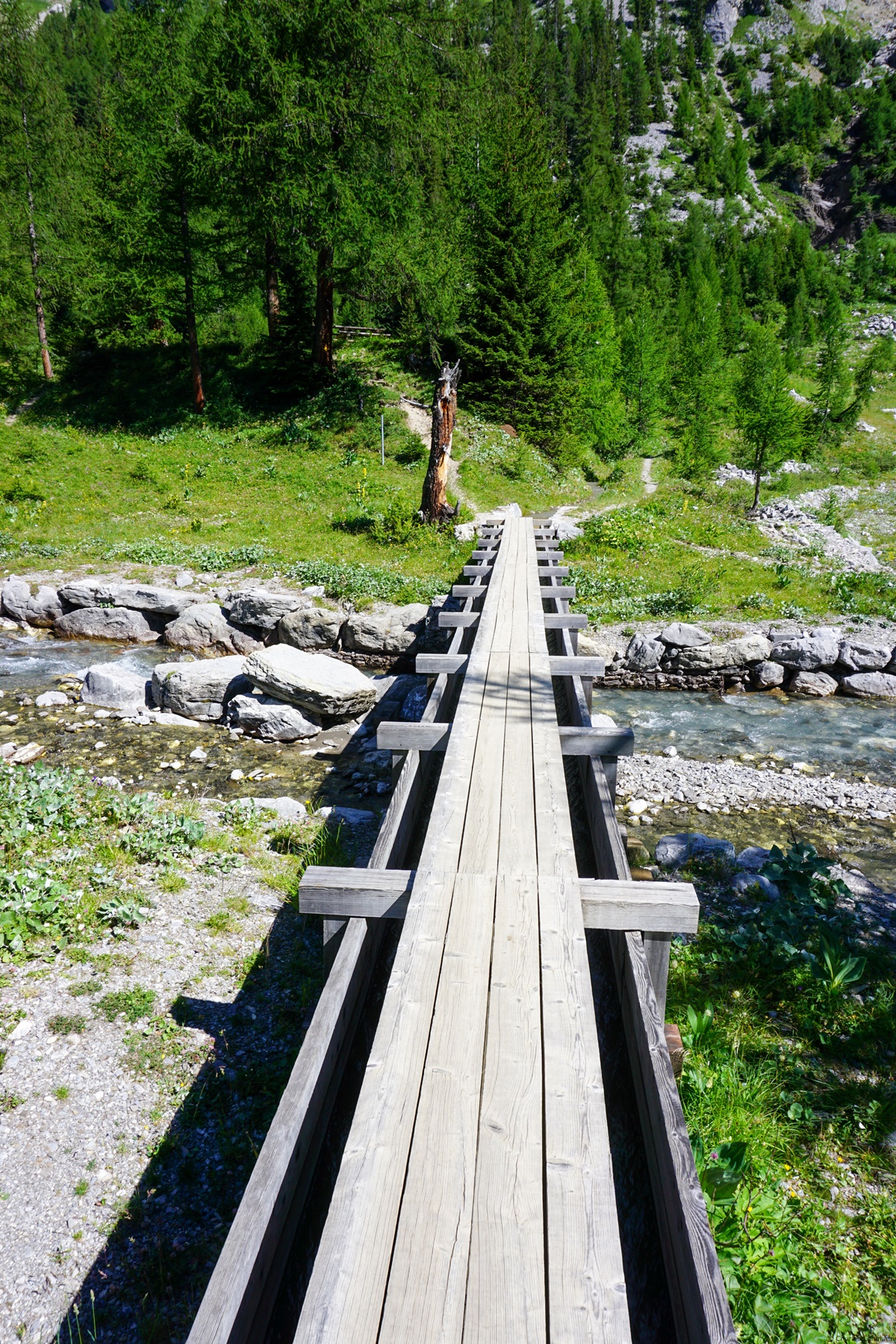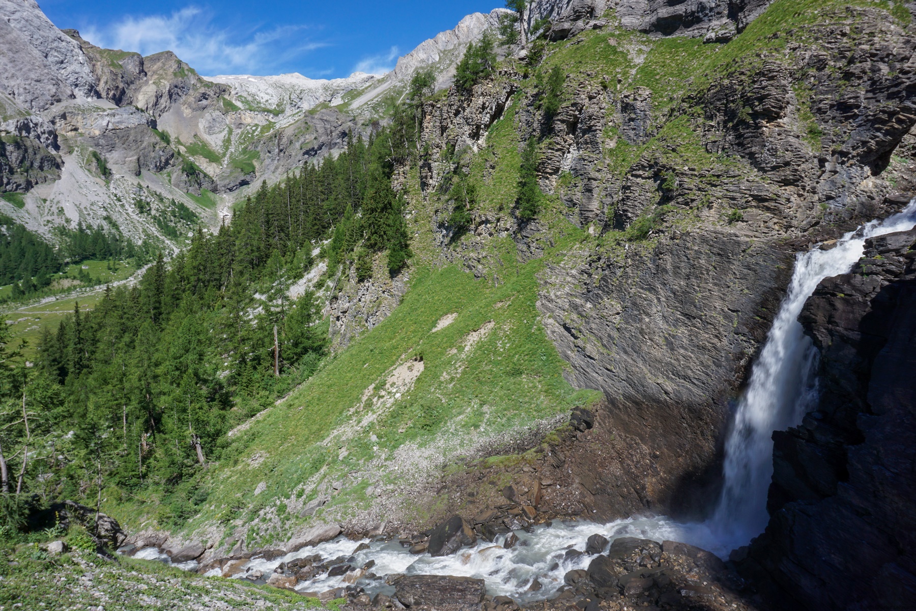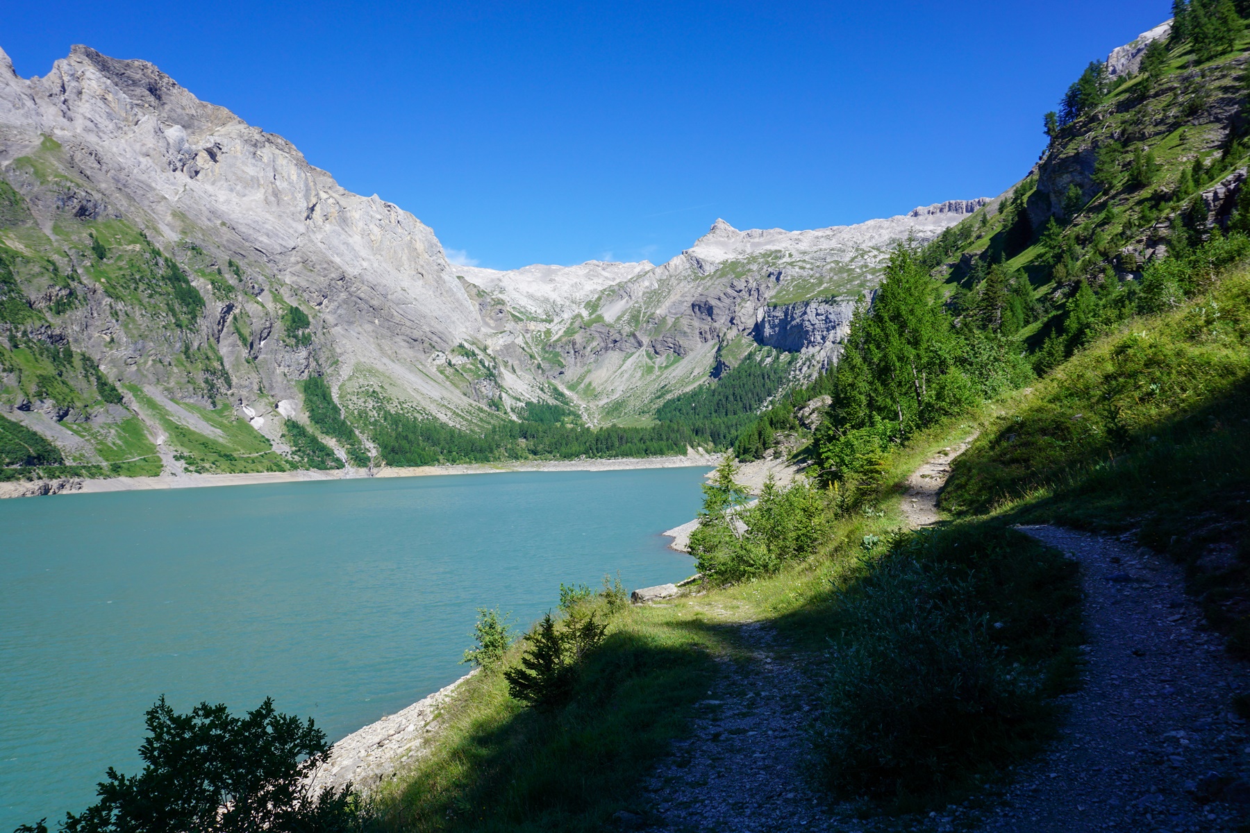 From the Tseuzier dam, it is worth following the path on the left bank. It is less convenient than the road on the right bank, but in doing so, one passes at the foot of the Source de Loquesse where the water wells up from a high wall. From the well, one has to go down a little to reach the Liène which one crosses twice: once on a footbridge and a second on the Bisse de Sion canal. By doing so, one directly reaches the wide path going up to Armillon.