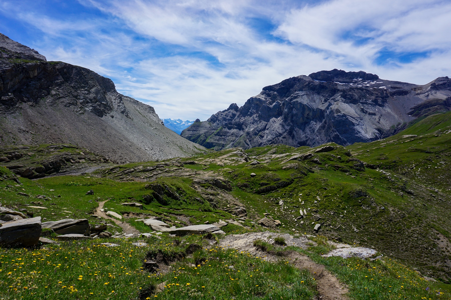 From there, one returns in the direction taken on the outward journey, but higher. It doesn’t take long to reach an area of limestone pavement that one has to cross in ascent. It is only when approaching the valley descending from the Schnidejoch that one leaves the rocky area.