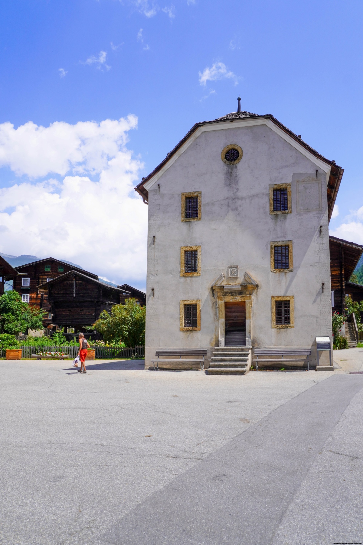 Das Buch von Corina Bille “Zu Fuss von der Rhone zur Maggia” ist aus mehreren Gründen spannend. Zum einen beschreibt sie, wie sie die paar Wandertage zwischen Fiesch und Cevio erlebt hat, zum anderen gibt sie kulturellen Einblick in die Wanderung, ganz im Sinne meines Berufs als Bergwanderleiter. Für den ersten Tag waren Corina, ihr Sohn und ihr Mann von Fiesch nach Ernen aufgebrochen. Dort hatten wir nicht ganz dem ursprünglichen beschriebenen Weg gefolgt. Die “Goms Bridge” genannte Hängebrücke existierte damals noch nicht und ich finde es interessant, dass sie zu überqueren.