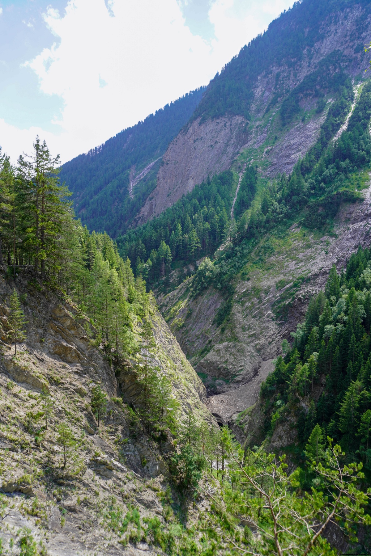 Ein weiterer Unterschied zum Weg, den Corina Bille beschreibt, ist, dass wir über den Galgen von Ernen gegangen sind, da wir von Mühlebach aus nicht dorthin hätten abbiegen müssen. In Ernen haben wir jedoch nicht die “Basler Trommler” getroffen, wie sie im Buch ausführlich beschrieben werden. Der weitere Weg, den unsere Protagonisten gegangen sind, ist nicht ganz klar. Man kann sich vorstellen, dass sie die Strasse gefolgt sind, da sie im Jahr 1954 wenig befahren war. Ausserdem gab es bis vor kurzem keine andere Möglichkeit als die Strasse zwischen Ausserbinn und die Twingischlucht zu folgen. Ein neuer Wanderweg ermöglicht es, den Graben unterhalb von Ausserbinn zu überqueren und die Strasse weiter unten zu folgen. Oberhalb von Ernen sind wir einen Teil der Trusera gegangen. Leider war diese Suone zu dem Zeitpunkt, als wir ihn gegangen sind, ausgetrocknet.