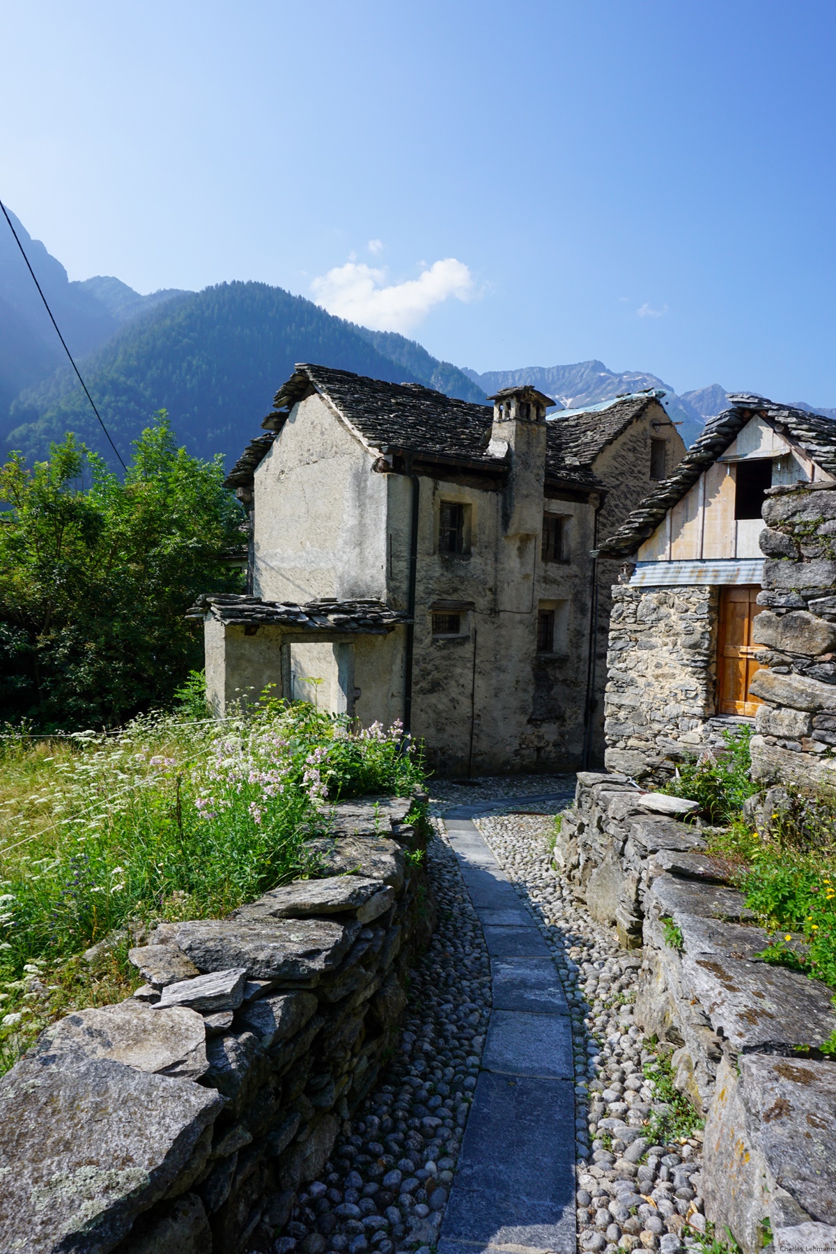 Selon sa description, ils avaient suivi la route pour gagner Cevio depuis Bosco/Gurin. A l’heure actuelle, un bon nombre de sentiers permettent d’éviter à prendre la route. Il faut toutefois mentionner que les embranchements ne sont pas toujours faciles à trouver. J’en ai fait l’expérience à Cerentino, Collinasca et Linescio. Dans ces villages, il faut vraiment avoir l’oeil rivé sur la carte… sinon on risque bien de rater le départ du sentier.