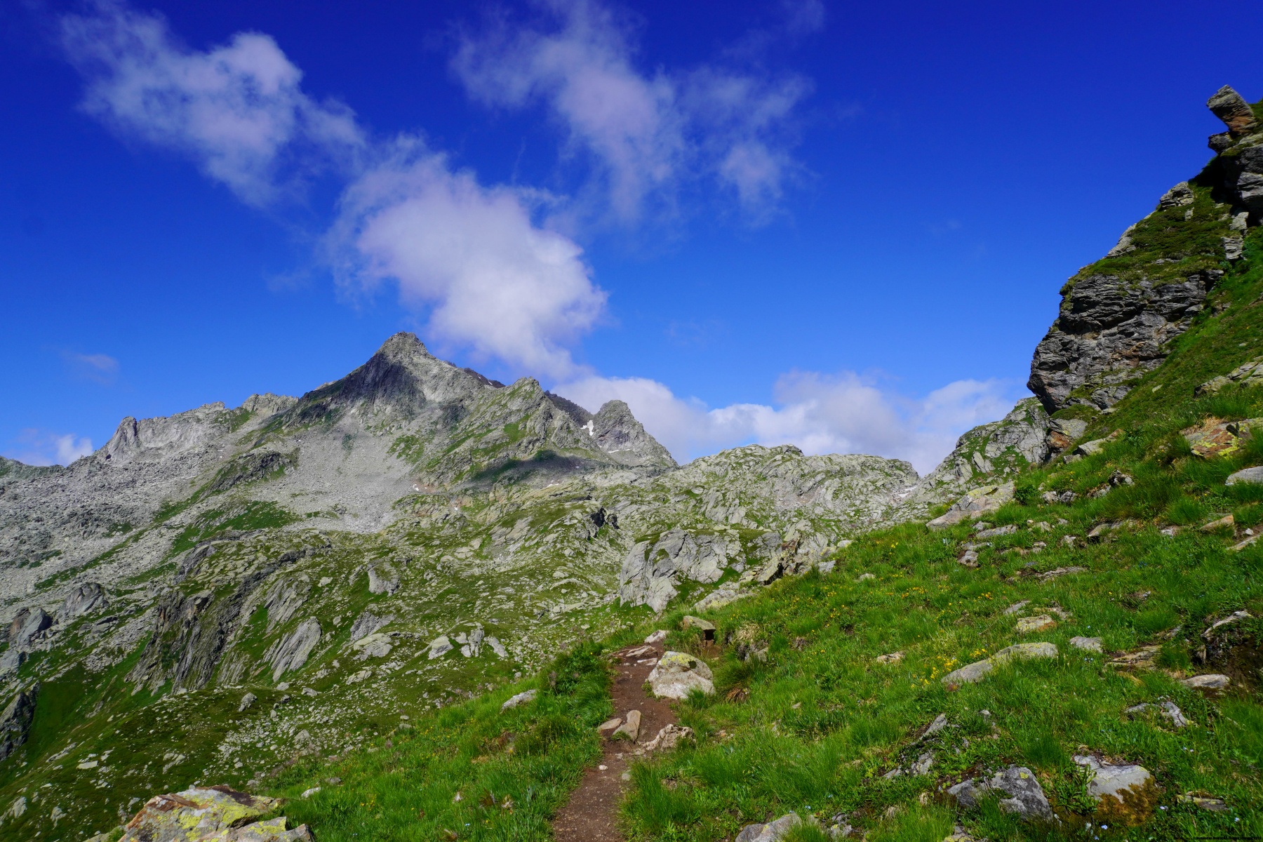 We therefore set off for the first obstacle of the day: the Albrunpass. In fact, speaking of obstacles, it must be kept in mind that the pass is only 150m altitude gain from the hut. We therefore arrived quite quickly at the pass, following a mule track beautifully paved in places.