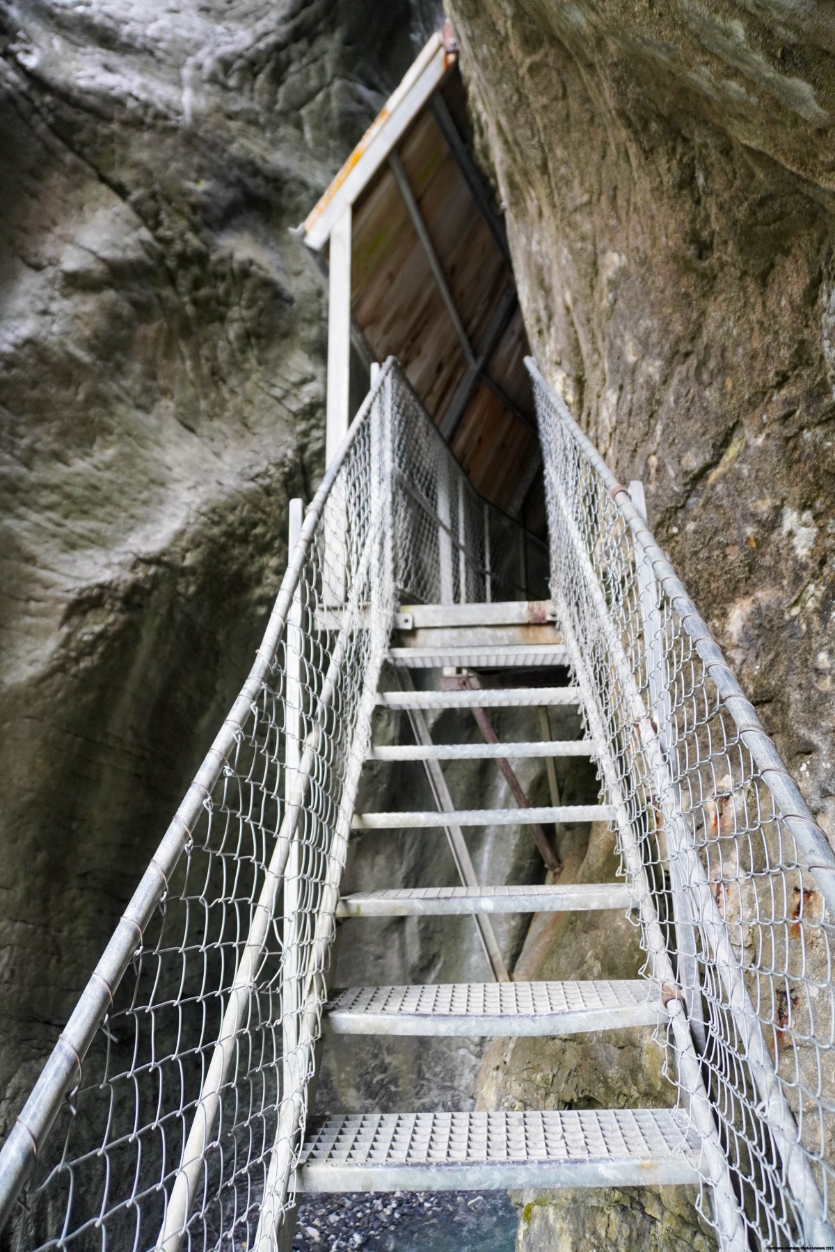 A la sortie de la gorge, on reprend la route pour revenir à Adelboden. Il est à noter que le sens décrit ici est celui recommandé (ou imposé). En effet, à la sortie de la gorge, un panneau indique qu’il faut se rendre au pied de celle-ci. Les passerelles et les escaliers ne permettent pas de croiser, ou de dépasser.