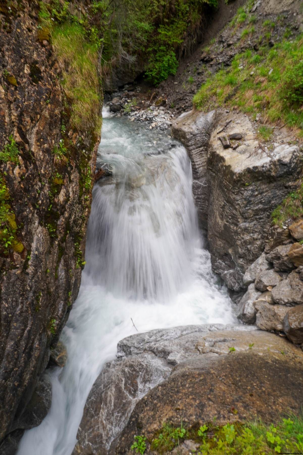 Près d’Adelboden se trouve une vallée latérale en rive gauche : le Tschentetal. Cette vallée possède un bassin versant assez important et il est fréquent que le Tschentbach présente un débit important. Dans le bas du Tschentetal, juste avant la jonction, la vallée se mue en une gorge étroite et profonde : la Cholereschlucht. Elle n’est pas très longue mais son parcours est spectaculaire.