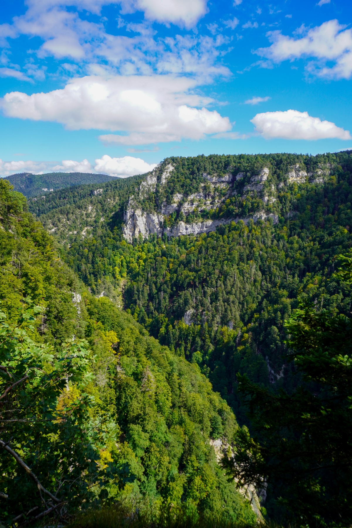 Au départ de Bellelay, on doit suivre la route menant à Moron. Bien que celle-ci soit normalement peu fréquentée, le trafic était important le jour où nous avions entrepris cette randonnée, gâchant un peu l’expérience. Depuis Moron, la suite du tour se déroule avant tout en descente jusqu’à ce qu’on arrive le long de la Sorne. A partir de là, il faut monter de manière sensible pour gagner le bord des rochers. Là, un petit sentier, non indiqué sur la carte permet de descendre dans les Gorges du Pichoux, vers les Blanches Fontaines.