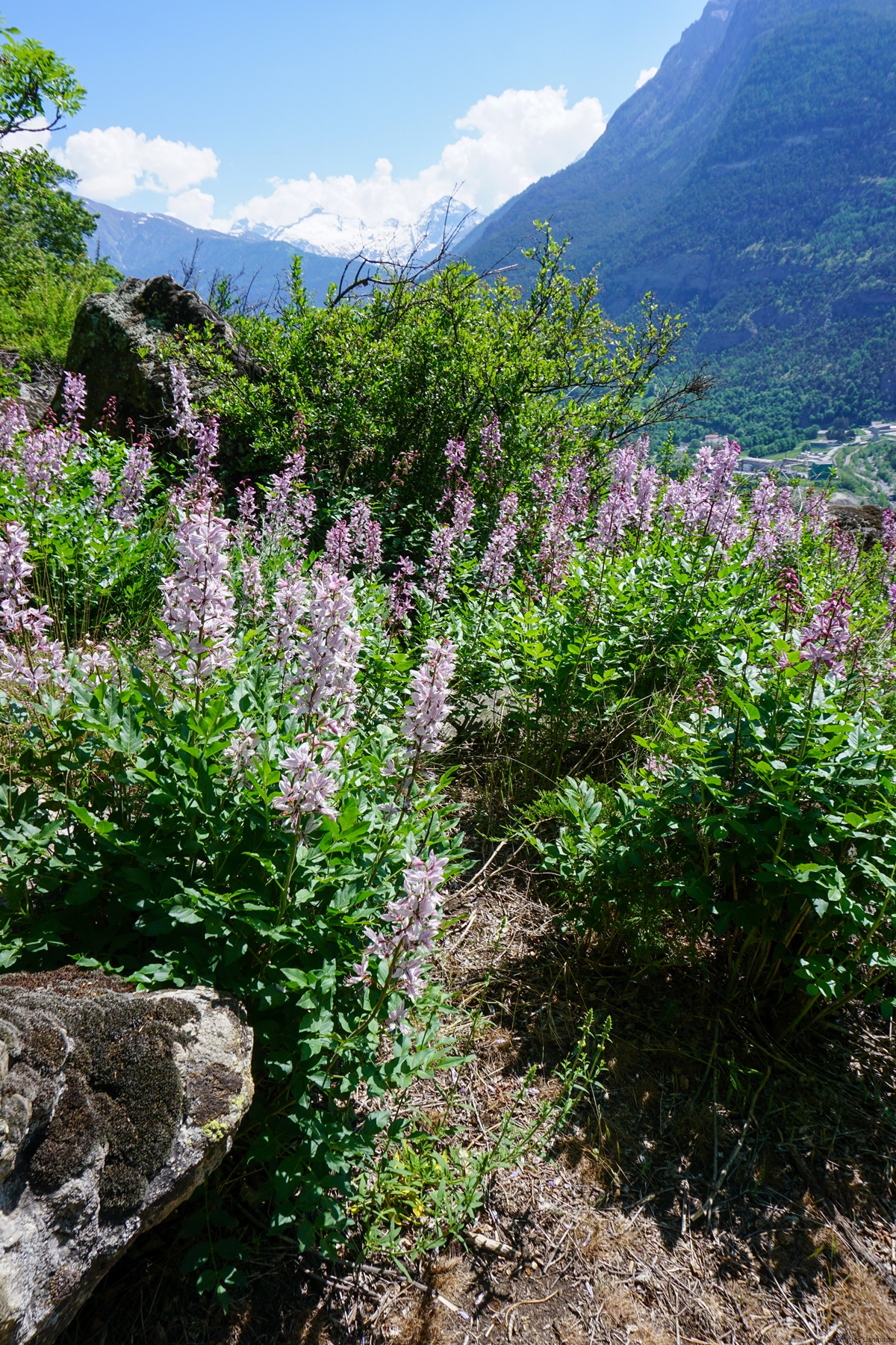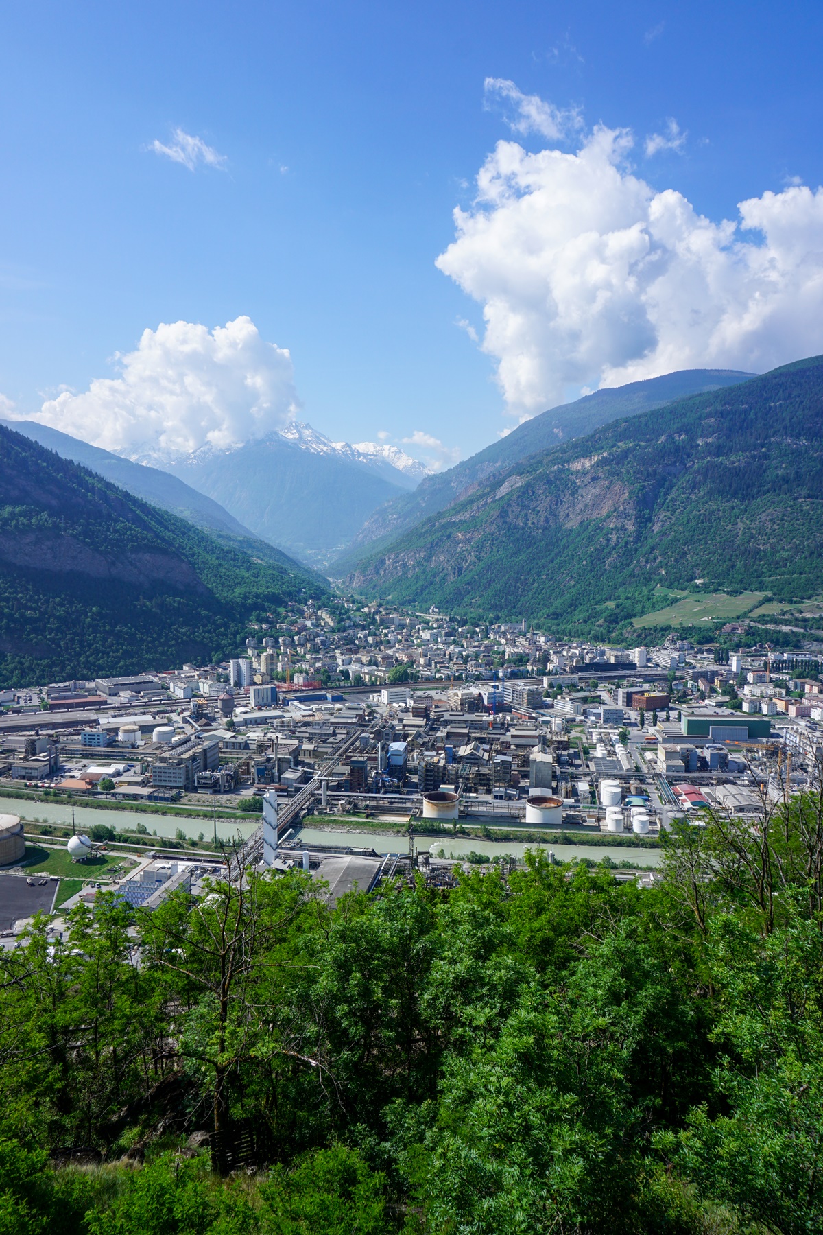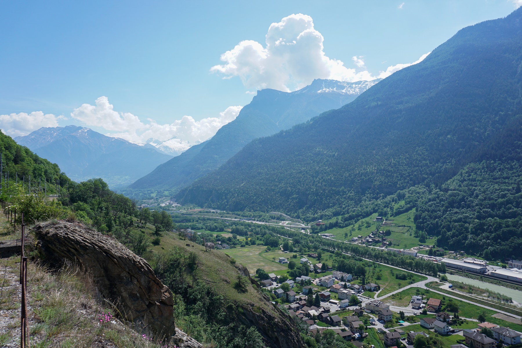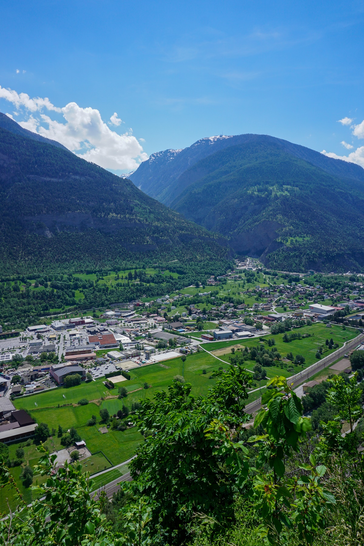 Plus loin on franchit le Mundbach sur une impressionnante passerelle métallique. On ne tarde pas alors à suivre un autre Bisse : la Driestneri (« celle de Drieschta »). On rencontrera encore quelques belles montées ainsi qu’une raide descente permettant d’atteindre l’entrée du fort d’artillerie de Naters. Ce fort peut se visiter, car il a été transformé en musée. Il y abrite, du reste, le musée de la Garde Suisse du Vatican. A partir de cet endroit, on pourrait être tenté de rejoindre directement Brig. Il vaut cependant la peine de continuer un peu, car on traverse quelques passerelles métalliques permettant une belle vue sur Naters et Brig. De plus, en continuant, on passe devant la légendaire Ornavassoturm, qui a failli disparaître à la suite de l’incendie de la manufacture d’allumettes qu’elle abritait.