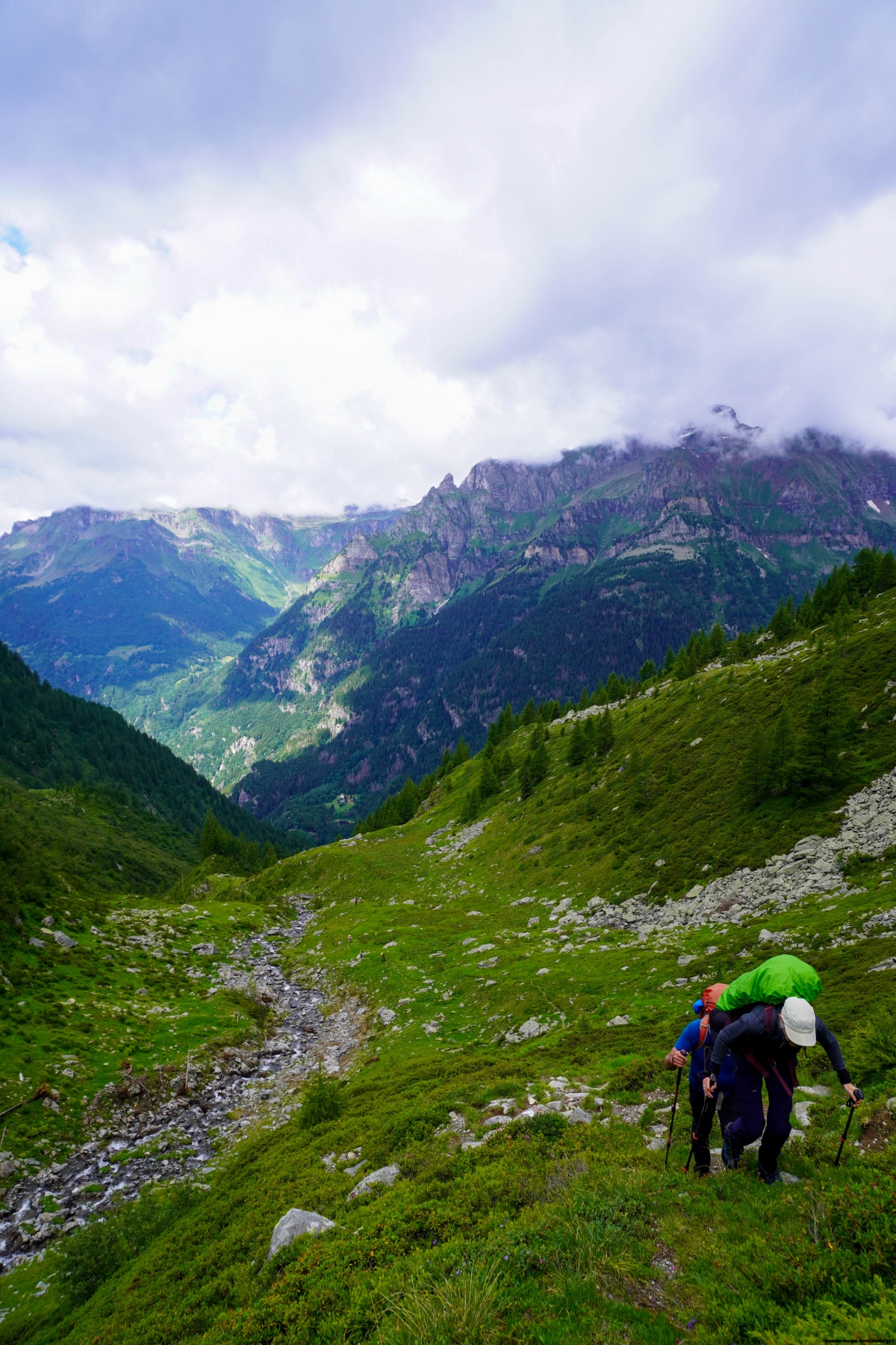 This day marked an important milestone on our journey from the Rhône to the Maggia: the crossing of the Hendar Furggu pass. But before we started the climb to the pass, we followed the bottom of the Pomat along a small, paved road, which was fortunately very little used. We followed it to Stafelwald, or Fondovalle. It is from this small locality that the real adventure begins. Indeed, the trail climbs almost without interruption to the vicinity of the pass.