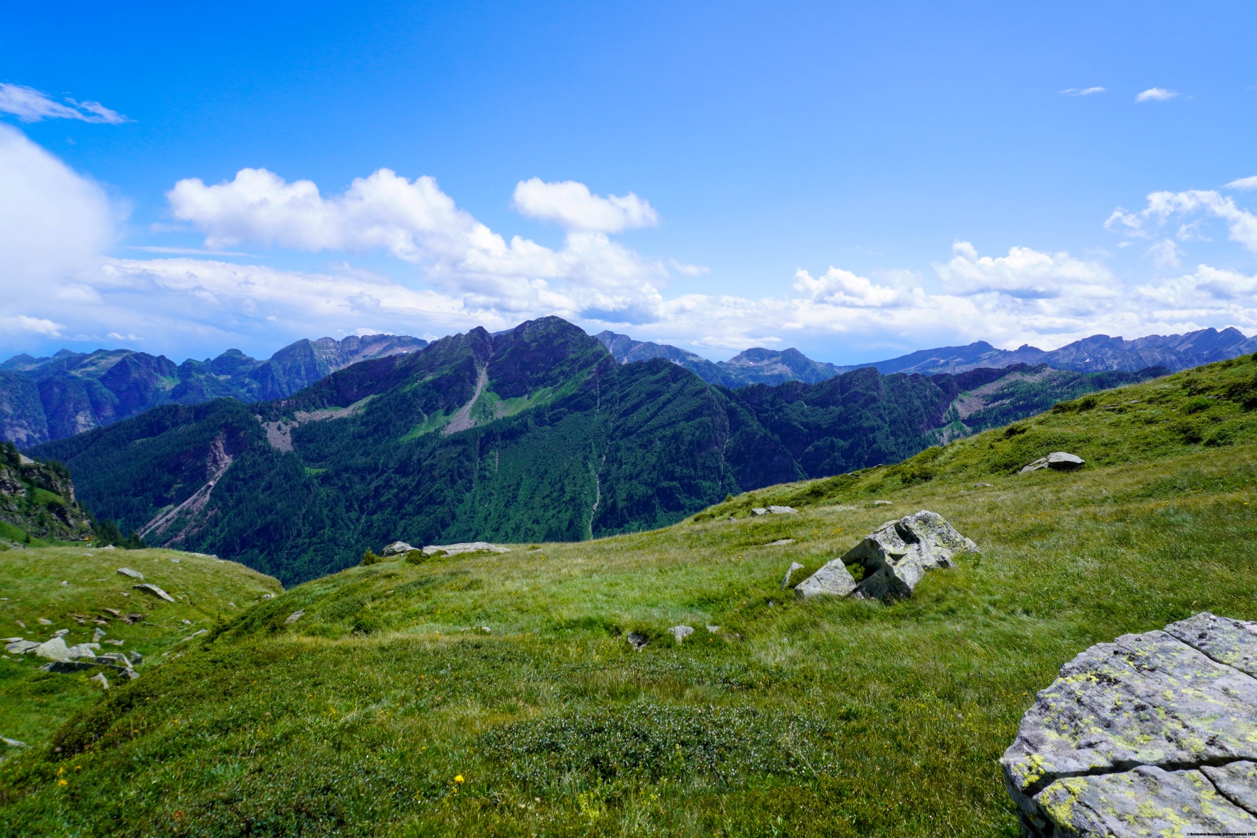 After the lake, we climbed very steeply up a kind of ridge that leads to a small valley filled with large boulders. We then had to cross these boulders in the best way possible to reach the pass. On the Ticino side, there are also boulders, but they are a bit smaller, and the area is easier to cross than the Italian side.