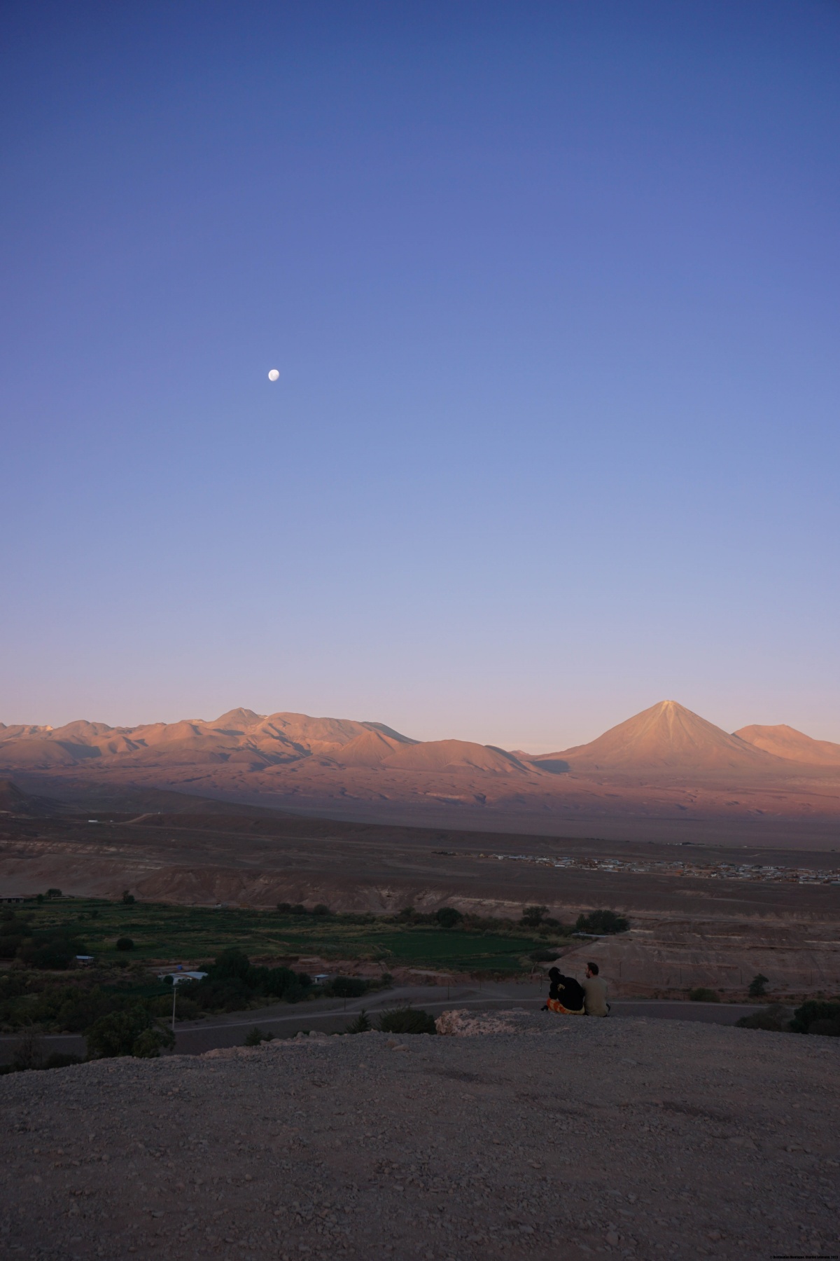 Après des heures de voyage (le vol Madrid – Santiago dure à lui seul 13h), nous avons atterri à Calama, à la deuxième tentative. En effet, alors que nous nous trouvions à quelques mètres au-dessus de la piste, une bourrasque à déséquilibré l’appareil et le pilote a décidé de repartir pour un tour.