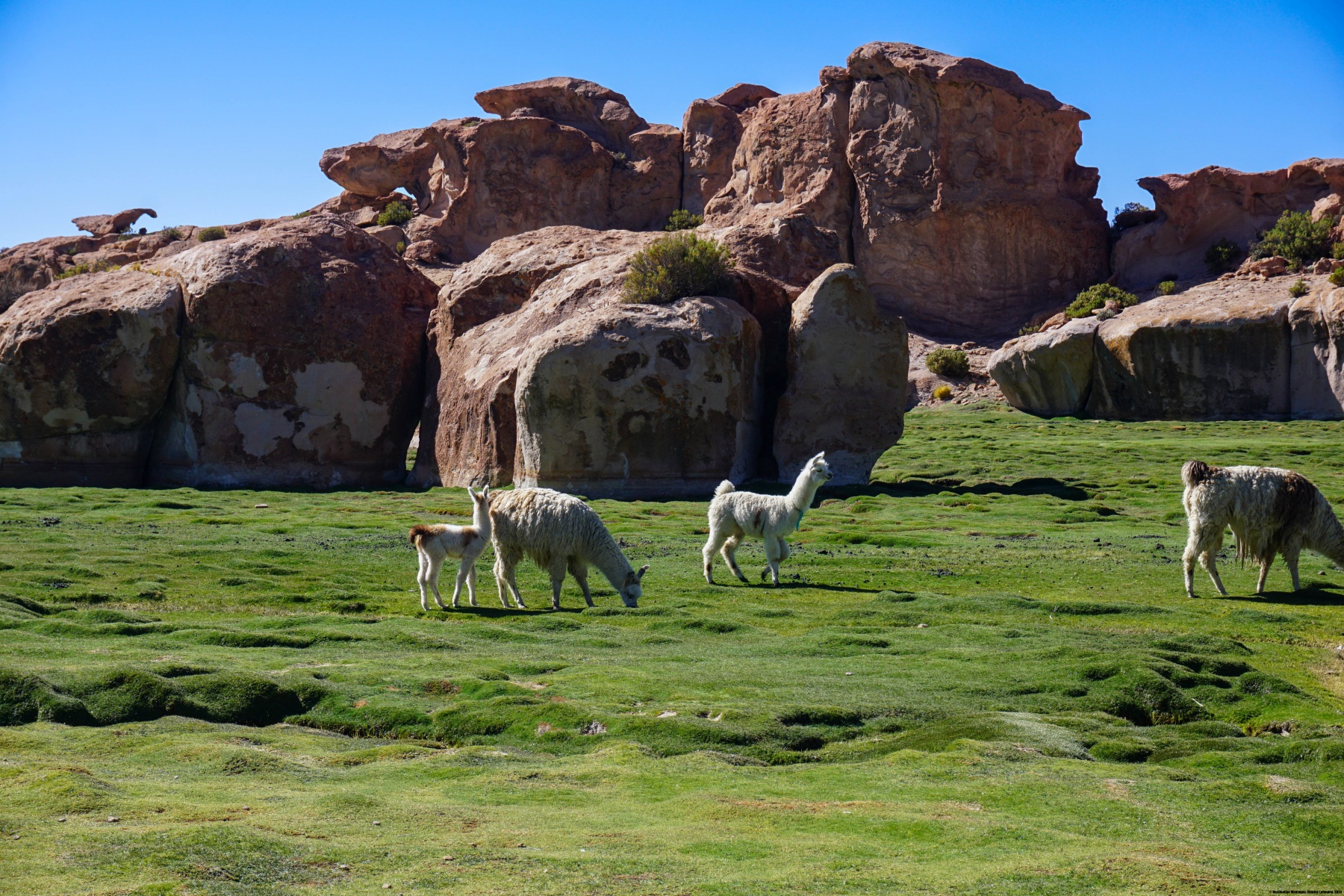 Du côté bolivien, après avoir remplis les formalités, nous nous sommes mis en route pour rejoindre Villa Mar. Les fleurons rencontrés le long de ce périple sont certainement le Sol de Mañana avec ses geysers de boue et la Laguna Colorada avec sa multitude de flamants roses.