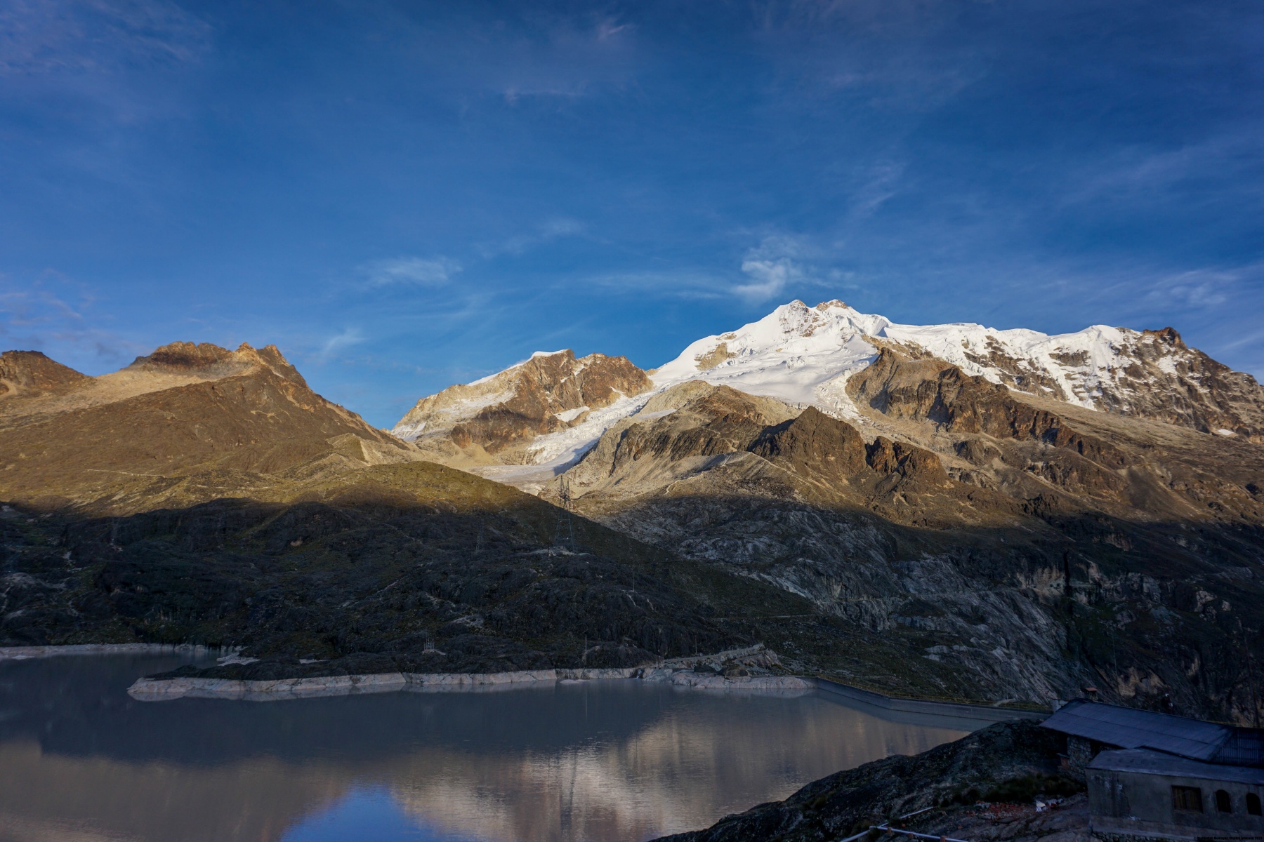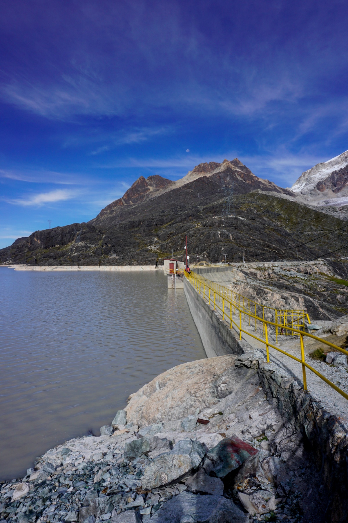 Le lac Zongo est en réalité un lac artificiel dont l’eau est clairement glaciaire : elle est laiteuse. Cette eau contraste fortement avec celles que l’on peut voir de loin en montant, et en particulier du lac de Milluni, à côté duquel se trouvaient des mines. Ces mines d’argent et d’étain ont eu, comme malheureusement trop souvent, pour conséquence de souiller la région en métaux lourds.