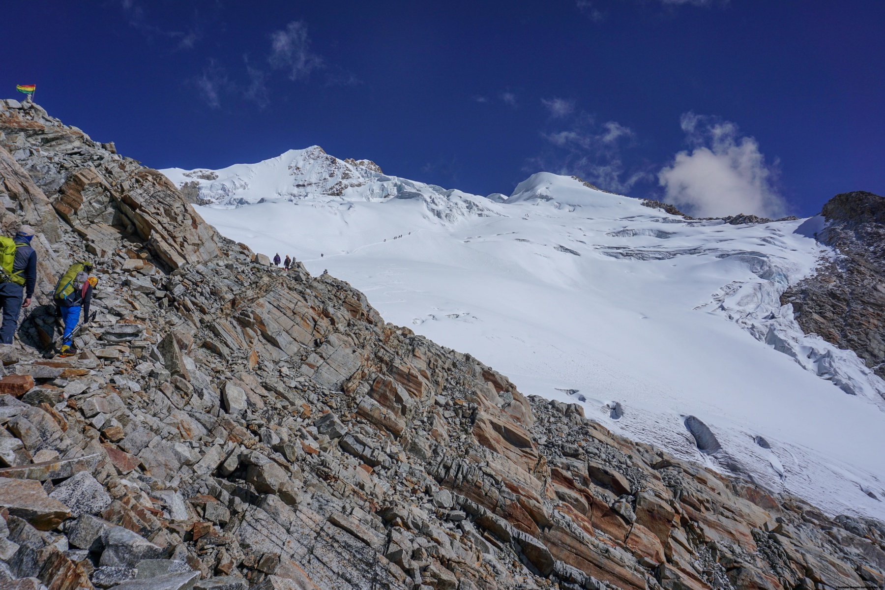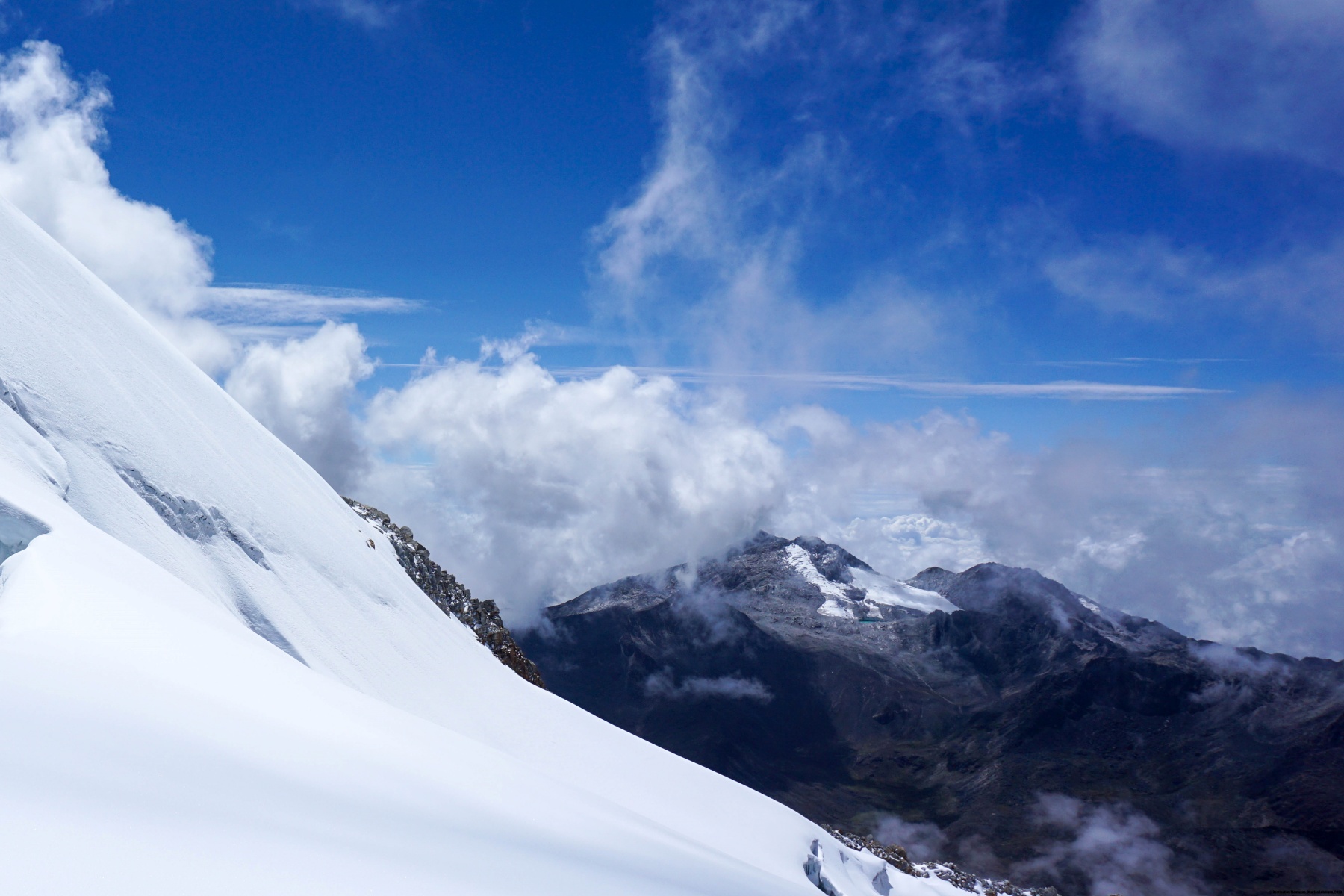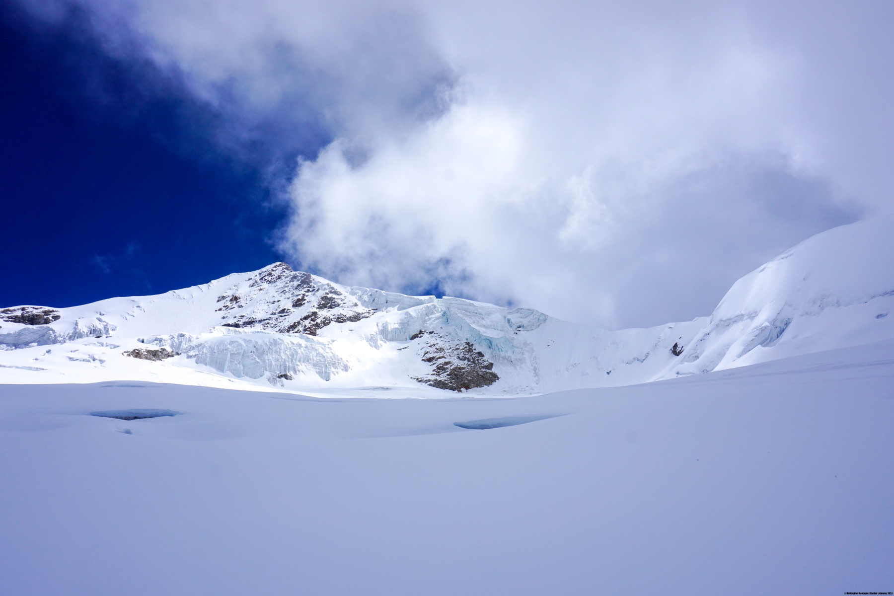 Ce dernier jour en altitude a consisté à monter au Campo Argentino. Le nom laisse indiquer la présence d’un refuge. Il n’en est rien : il s’agit d’une zone relativement plate et peu crevassée du glacier du Huayna Potosi. Depuis ce plateau, la voie normale gravit une pente permettant d’atteindre une arête et finalement, le sommet du Huayna Potosi.