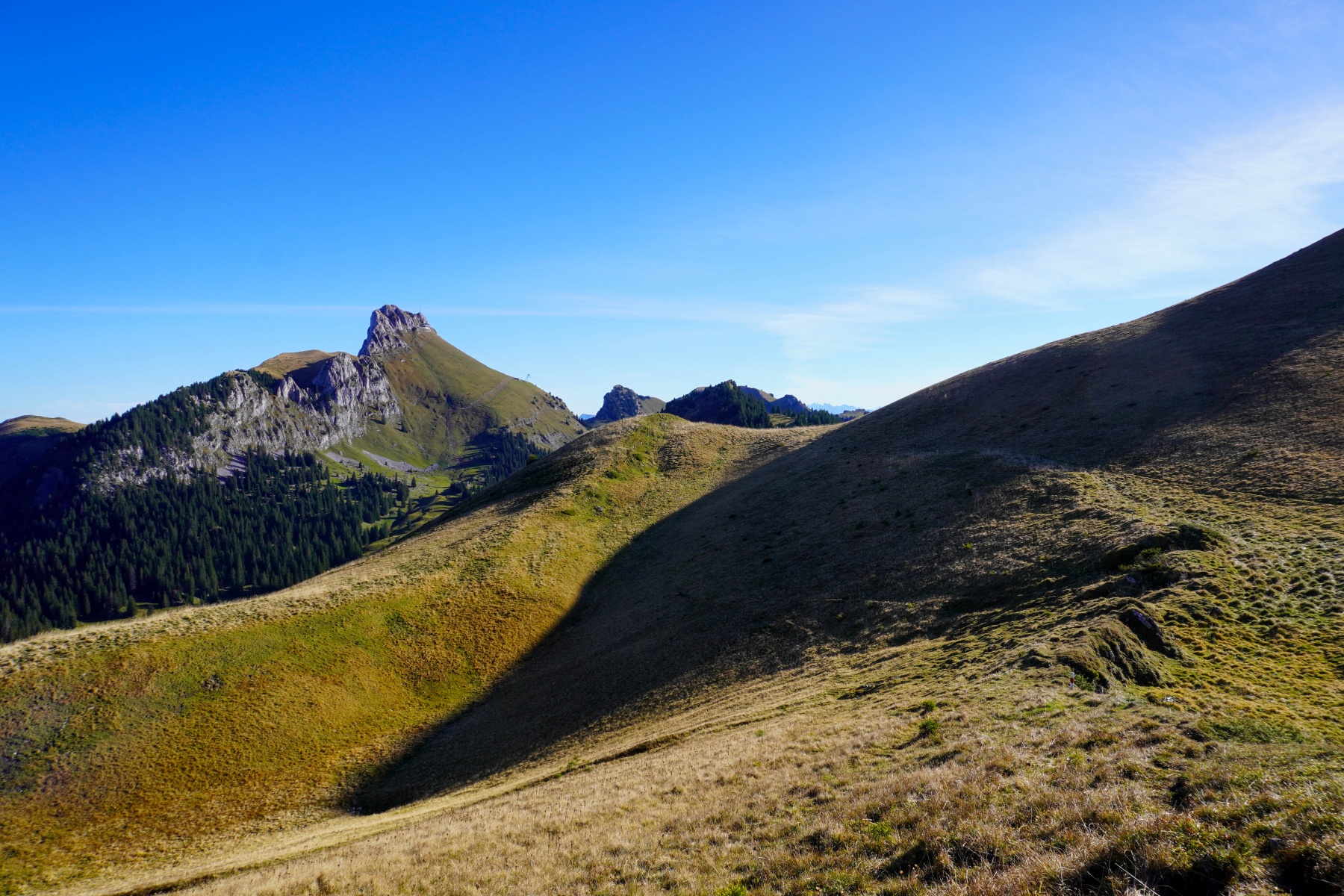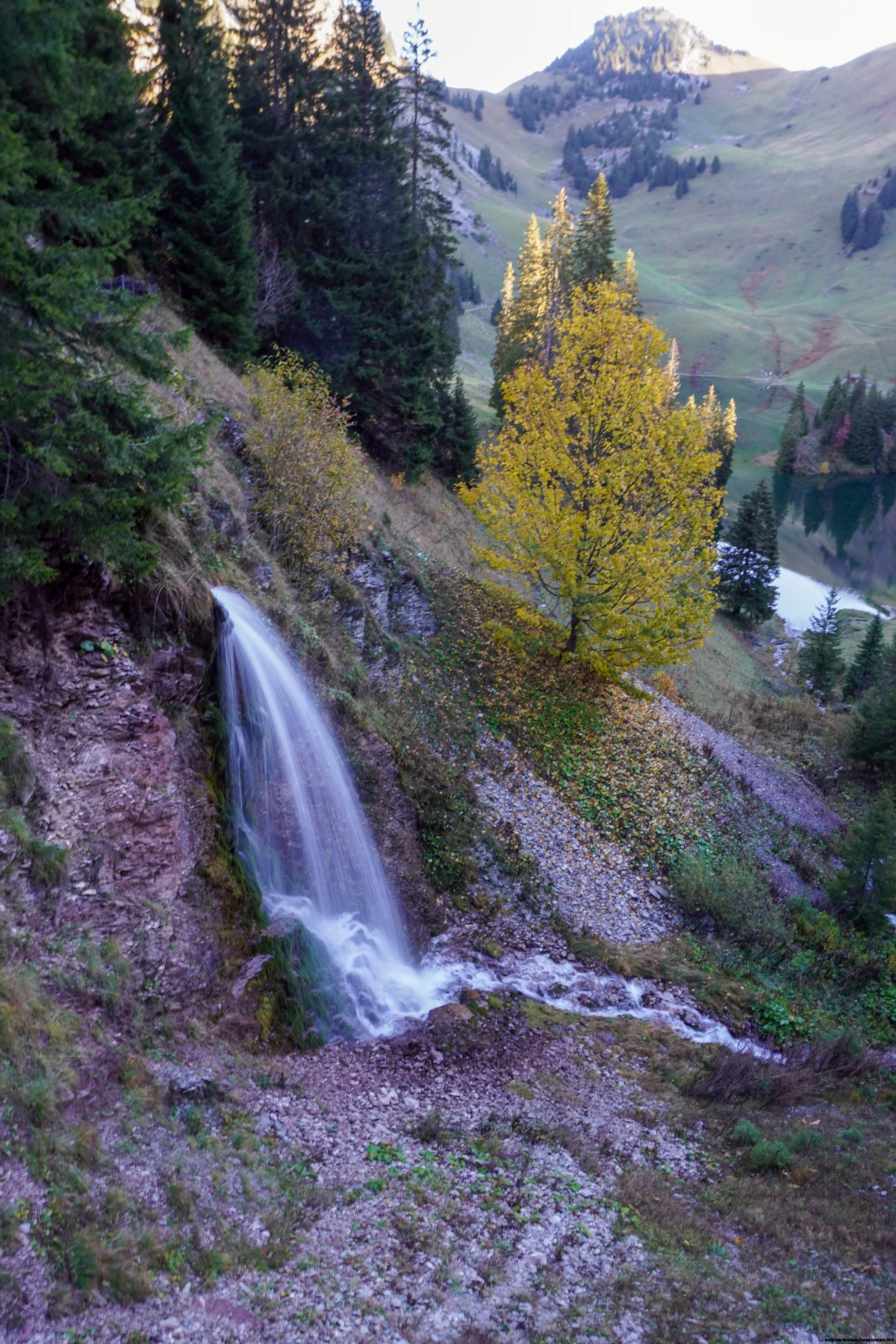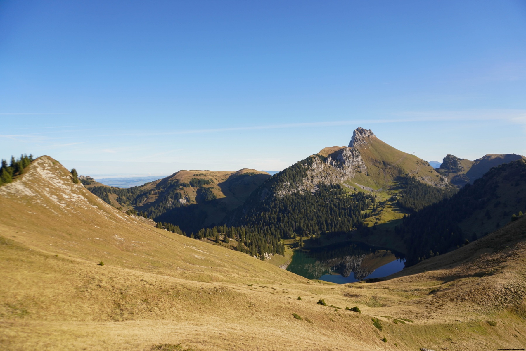 We chose to go there in mid-October when the weather was forecast to be very nice. We took the cable car up to Chrindi, from where we followed the marked trail around the lake and up to Vorderstocke. From there, we continued to climb up to the small peak next to the Pfaffli. The view from there is stunning.